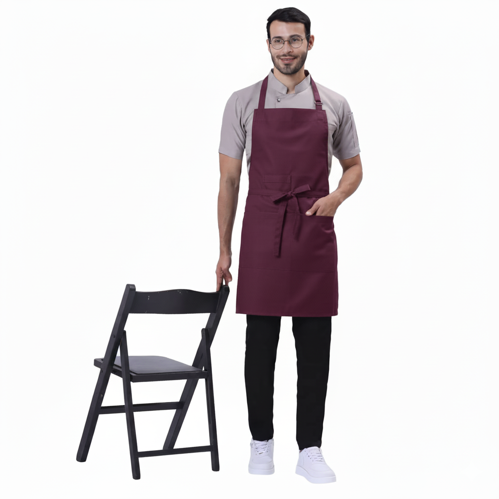 9Classic Kitchen Apron (Brown) - Free Embroidery