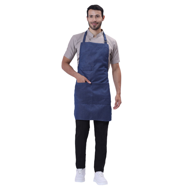 6Premium Denim Kitchen Apron (Classic Blue) - Free Embroidery