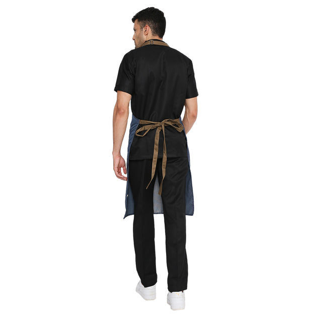 6Premium Denim Kitchen Apron (Dark Blue / Brown) - Free Embroidery