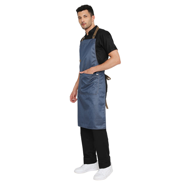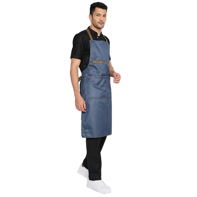 6Premium Denim Kitchen Apron (Classic Blue / Brown) - Free Embroidery