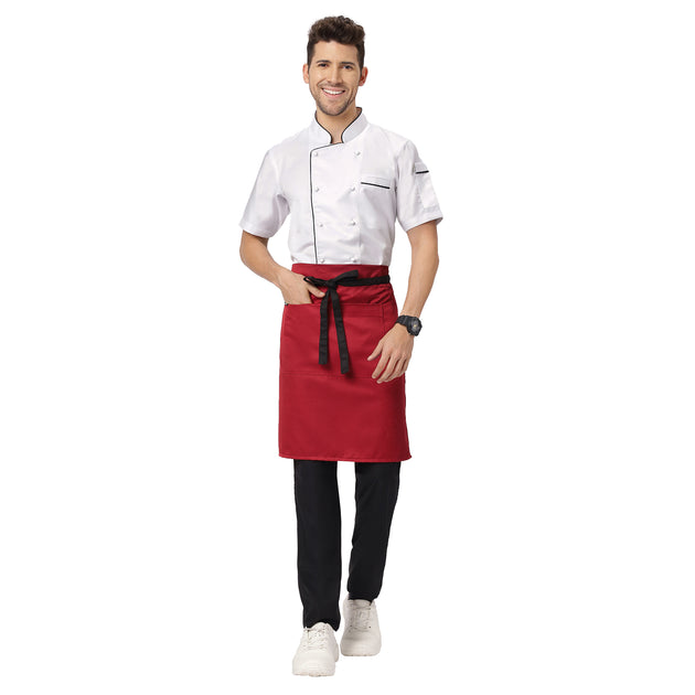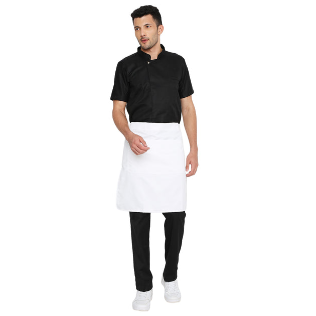 Pack of 4 Service Waist Apron (Black/White) Fine Line - Free Embroidery