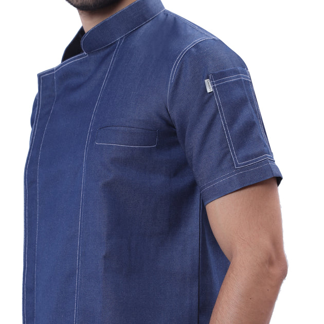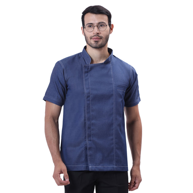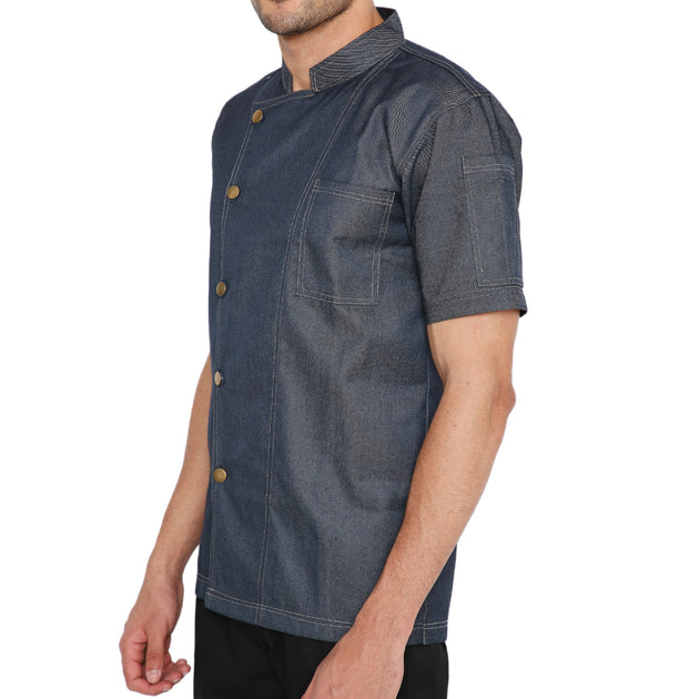 17Executive Denim Half Sleeve Chef Coat (Black Grey) - Free Embroidery