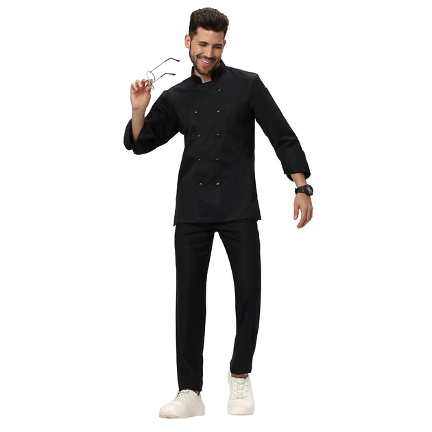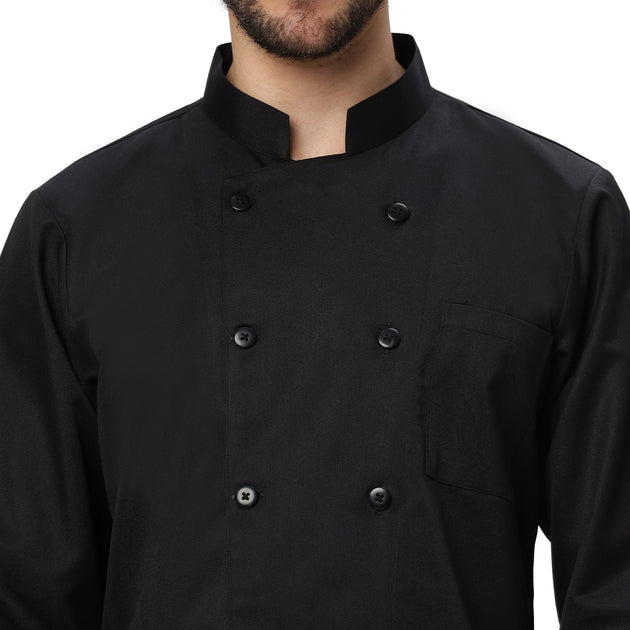 1Basic Unisex Full Sleeve Chef Coat (Black) - Free Embroidery