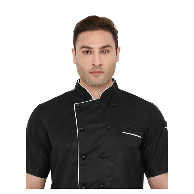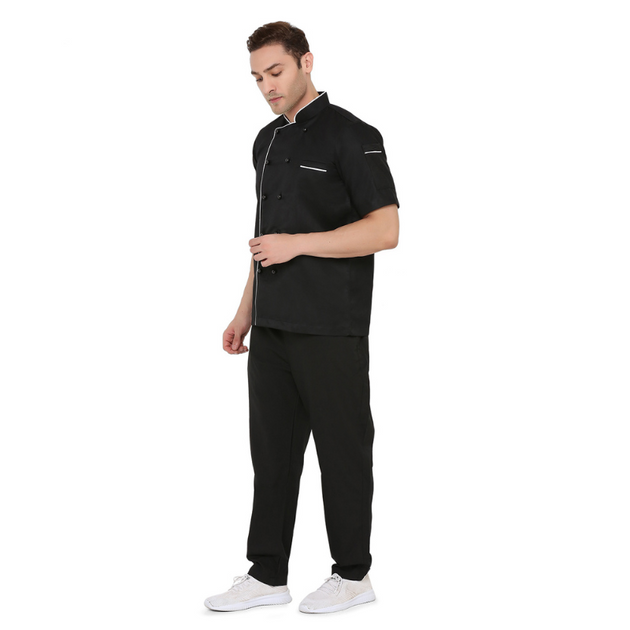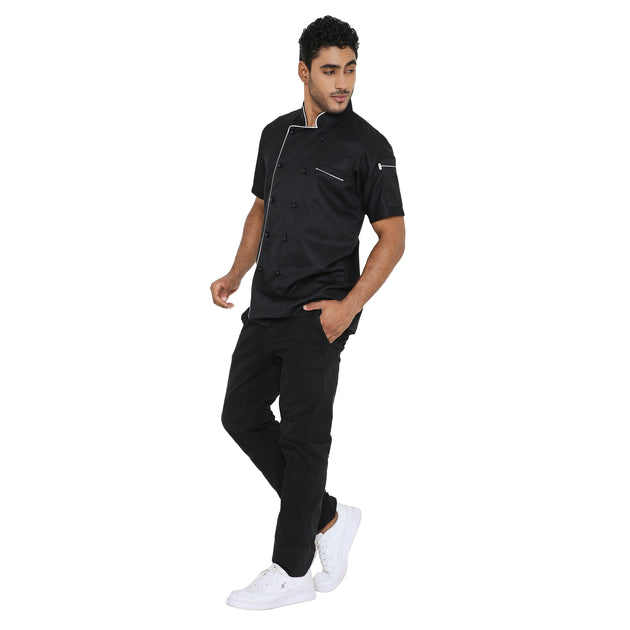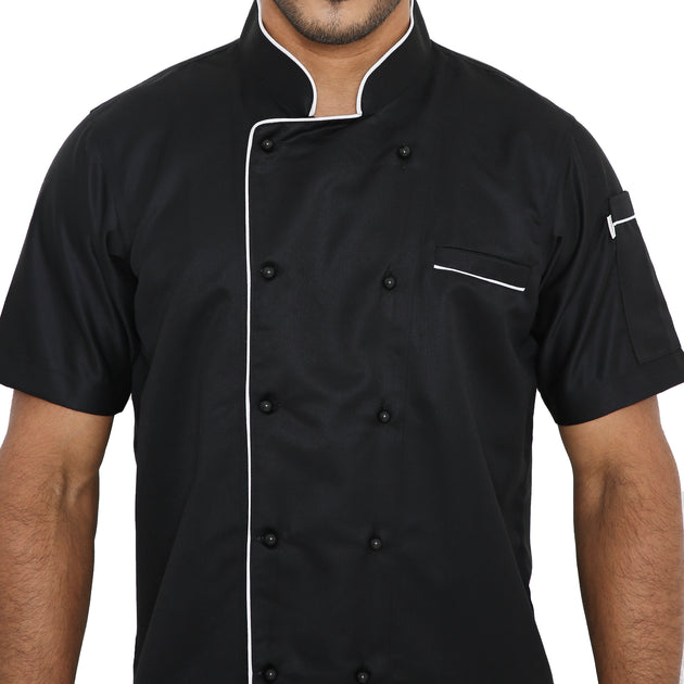 17Classic Half Sleeve Chef Coat (Black/White) - Free Embroidery