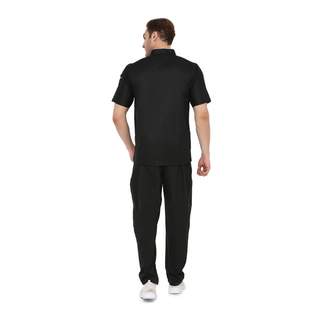 1Basic Unisex Half Sleeve Chef Coat (Black) - Free Embroidery