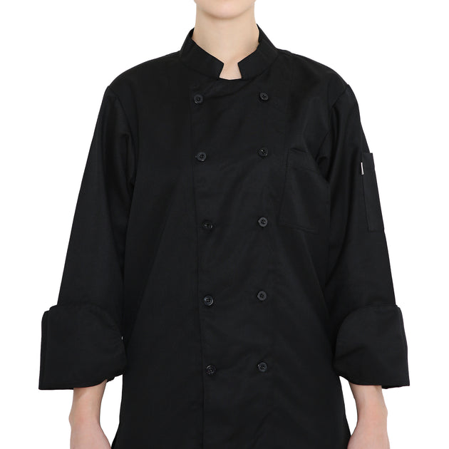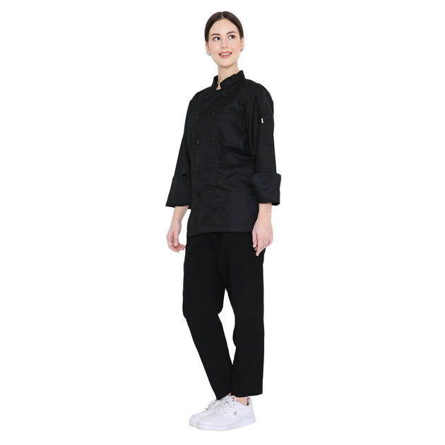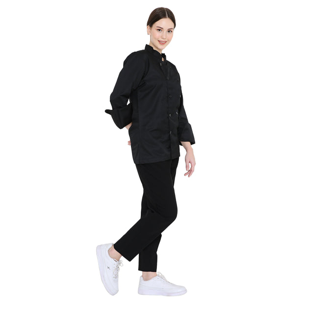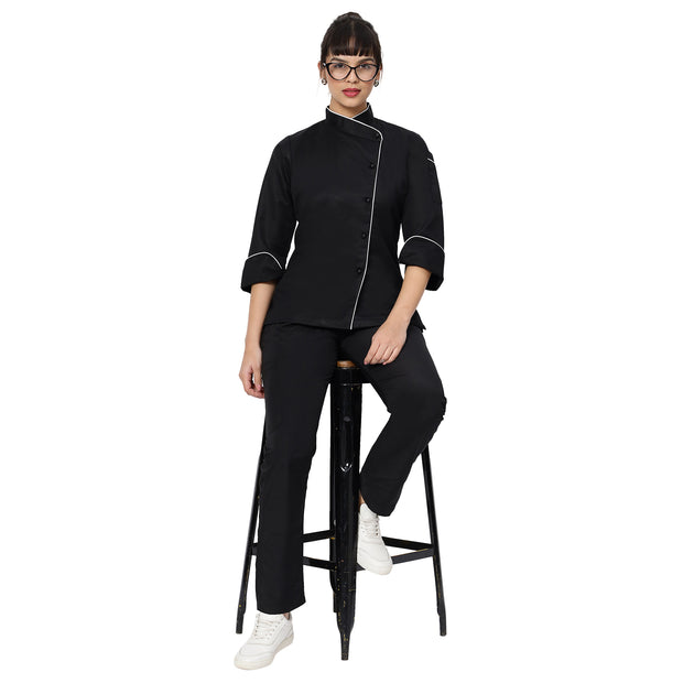 18Classic Women Full Sleeve Chef Coat (Black/White) - Free Embroidery