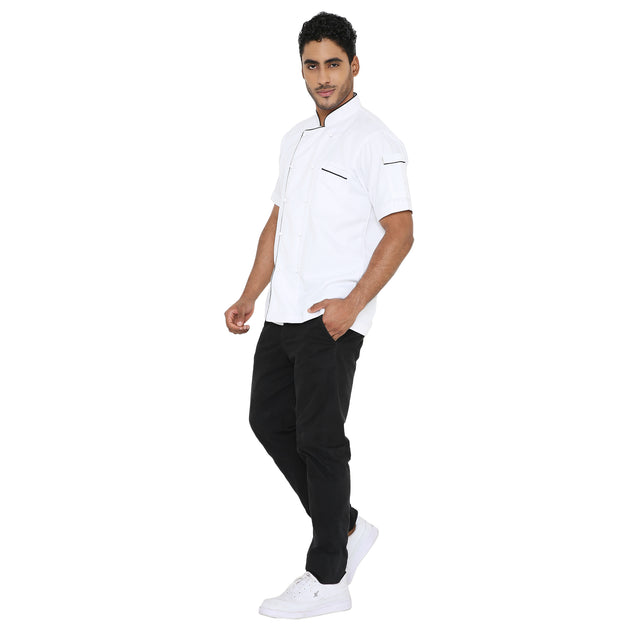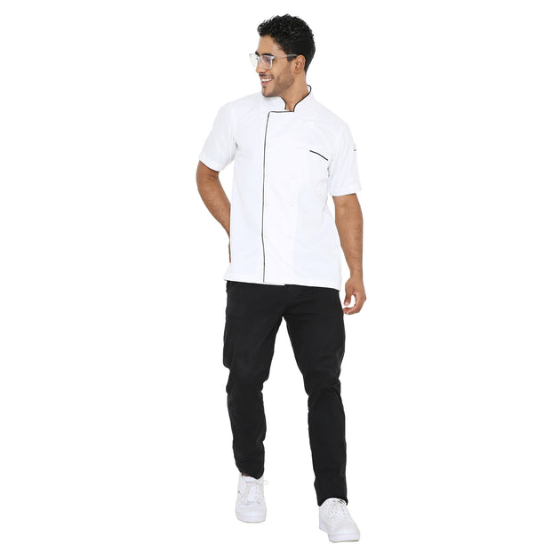 29Classic Half Sleeve Chef Coat (White/Black) - Free Embroidery