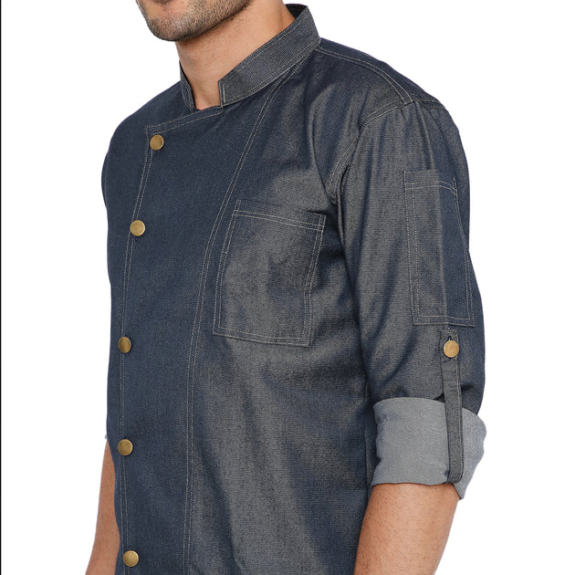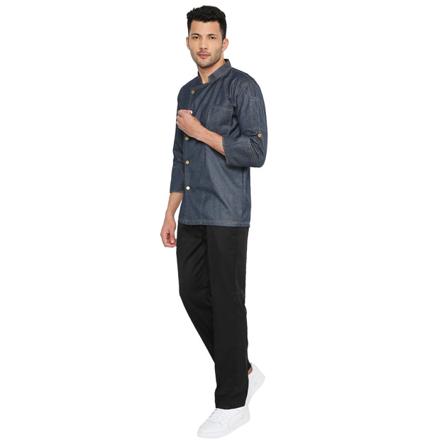20Executive Denim Full Sleeve Chef Coat (Black Grey) - Free Embroidery