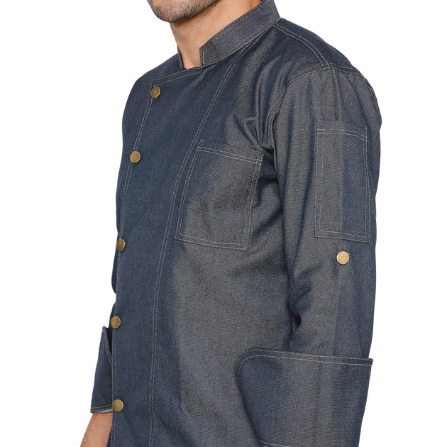 Executive Denim Zipper Chef Coat (Classic Blue) - Free Embroidery