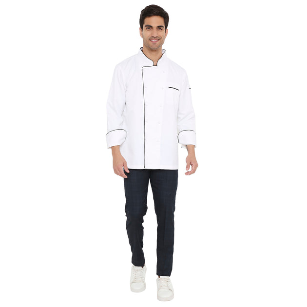 1Classic Full Sleeve Chef Coat (White/Black) - Free Embroidery