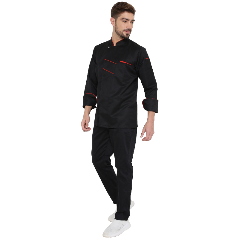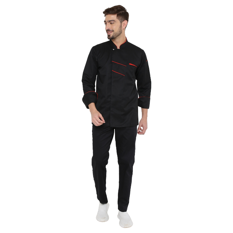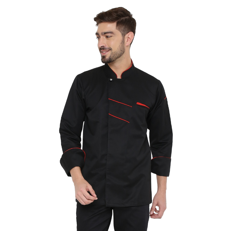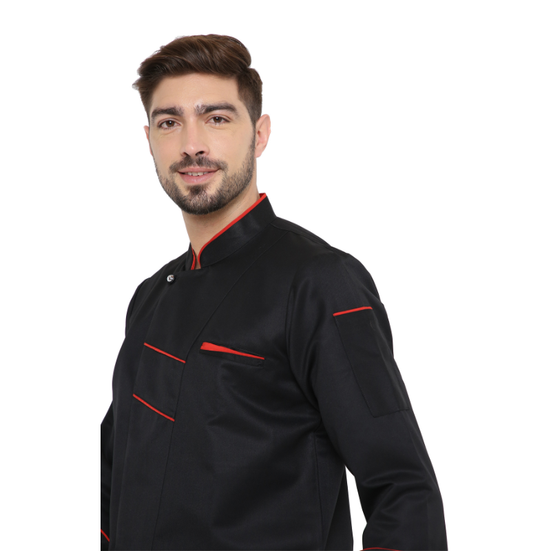 - Black Chef Coat with Red piping it give Classy extra ordinary look.