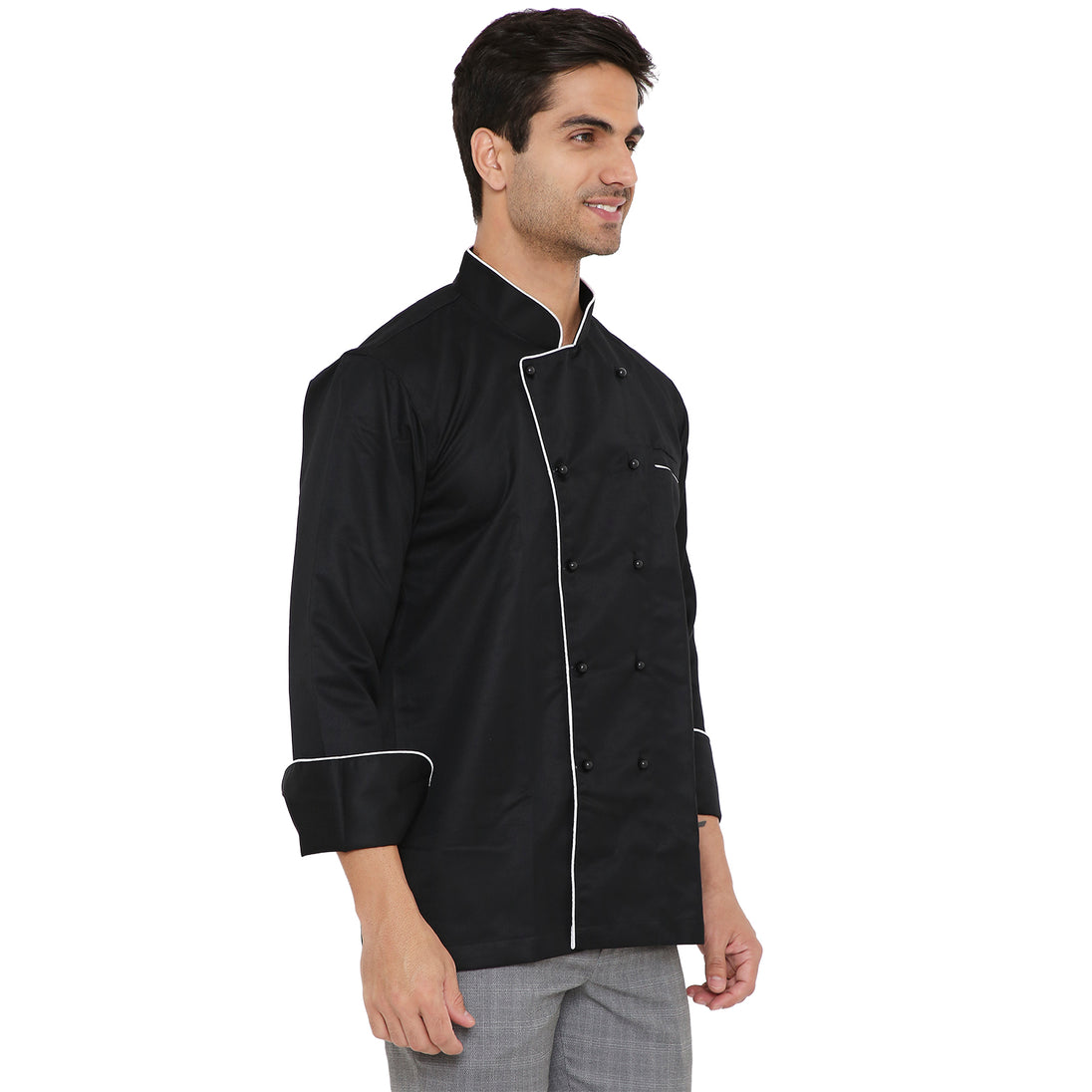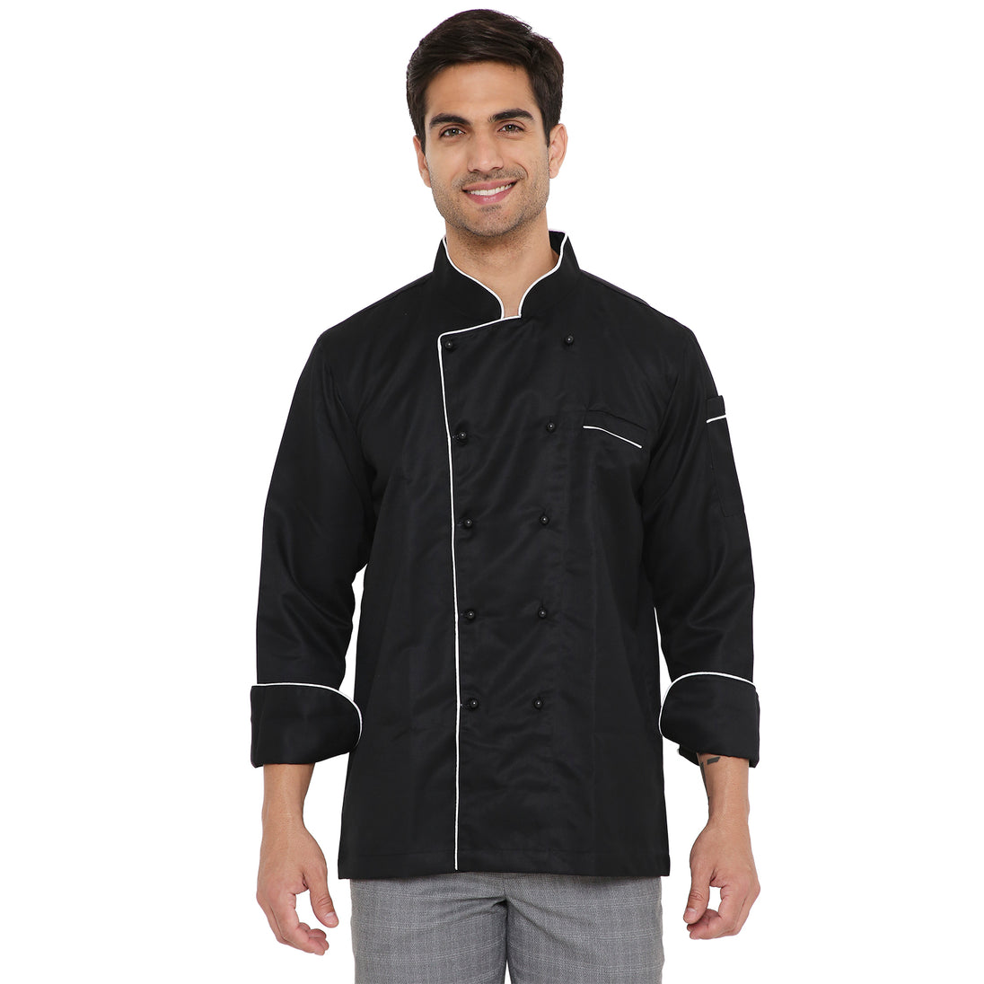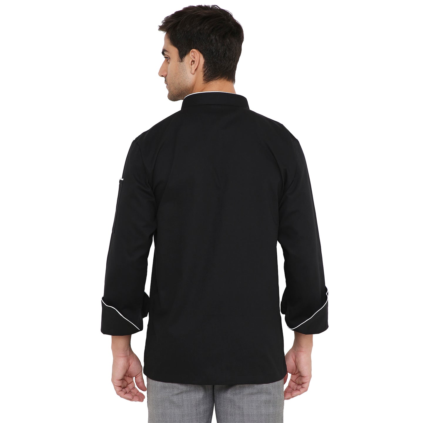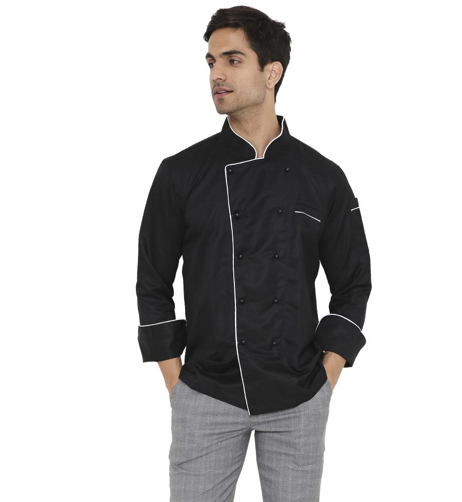 1Classic Full Sleeve Chef Coat (White/Black) - Free Embroidery