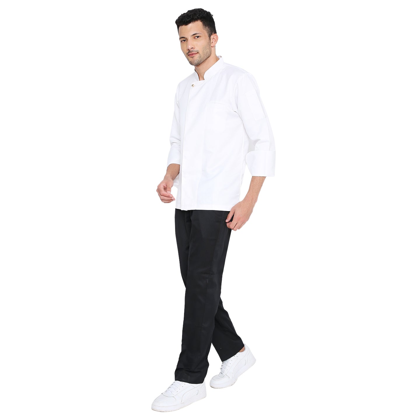 1Classic Full Sleeve Chef Coat (White/Black) - Free Embroidery