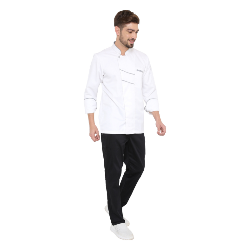 - White Chef Coat with Grey piping it give Classy extra ordinary look.