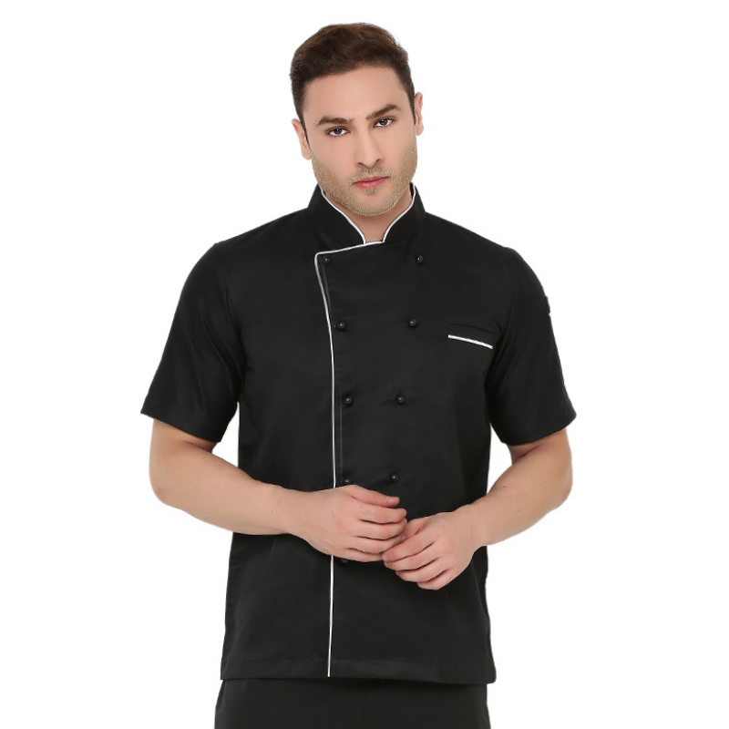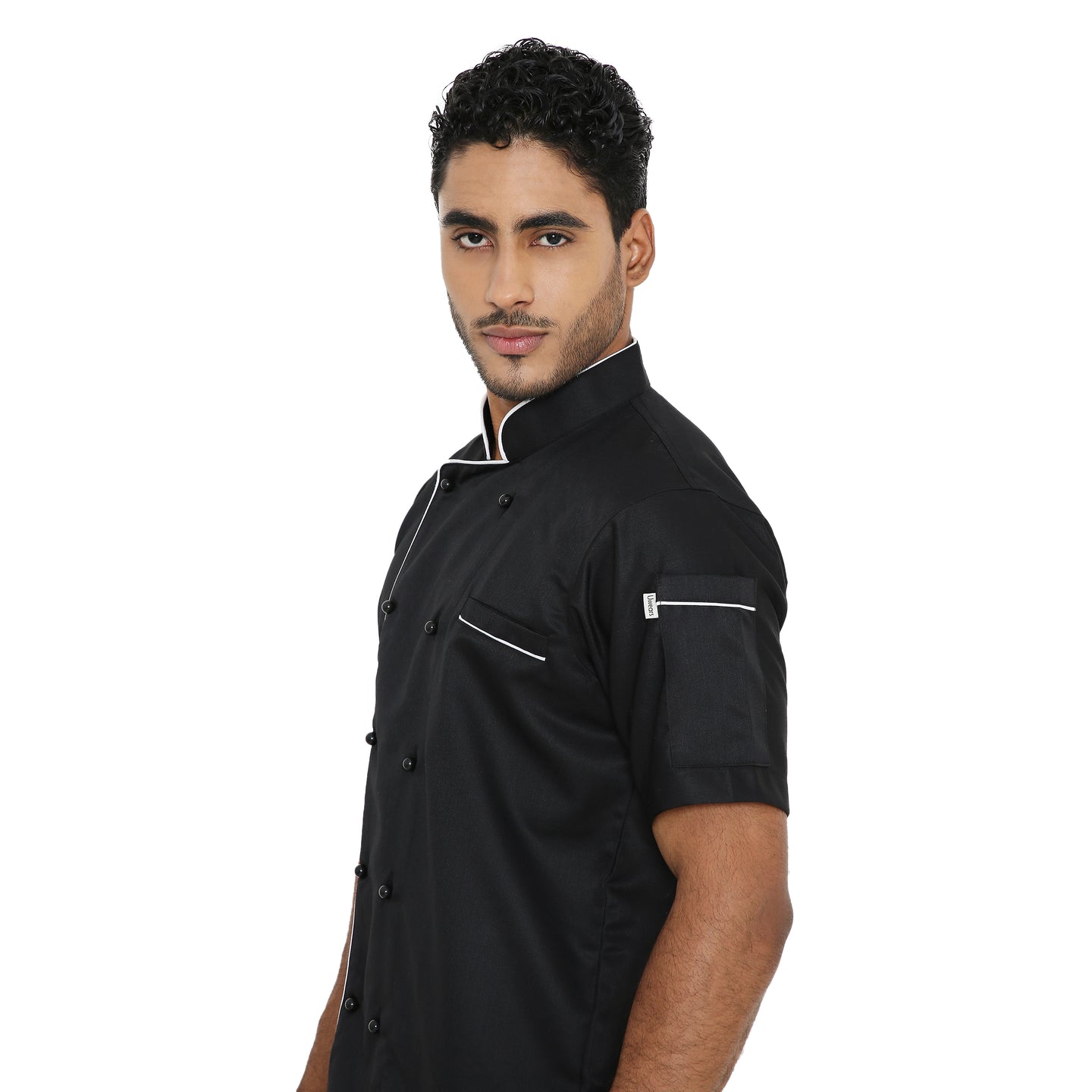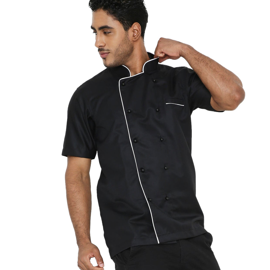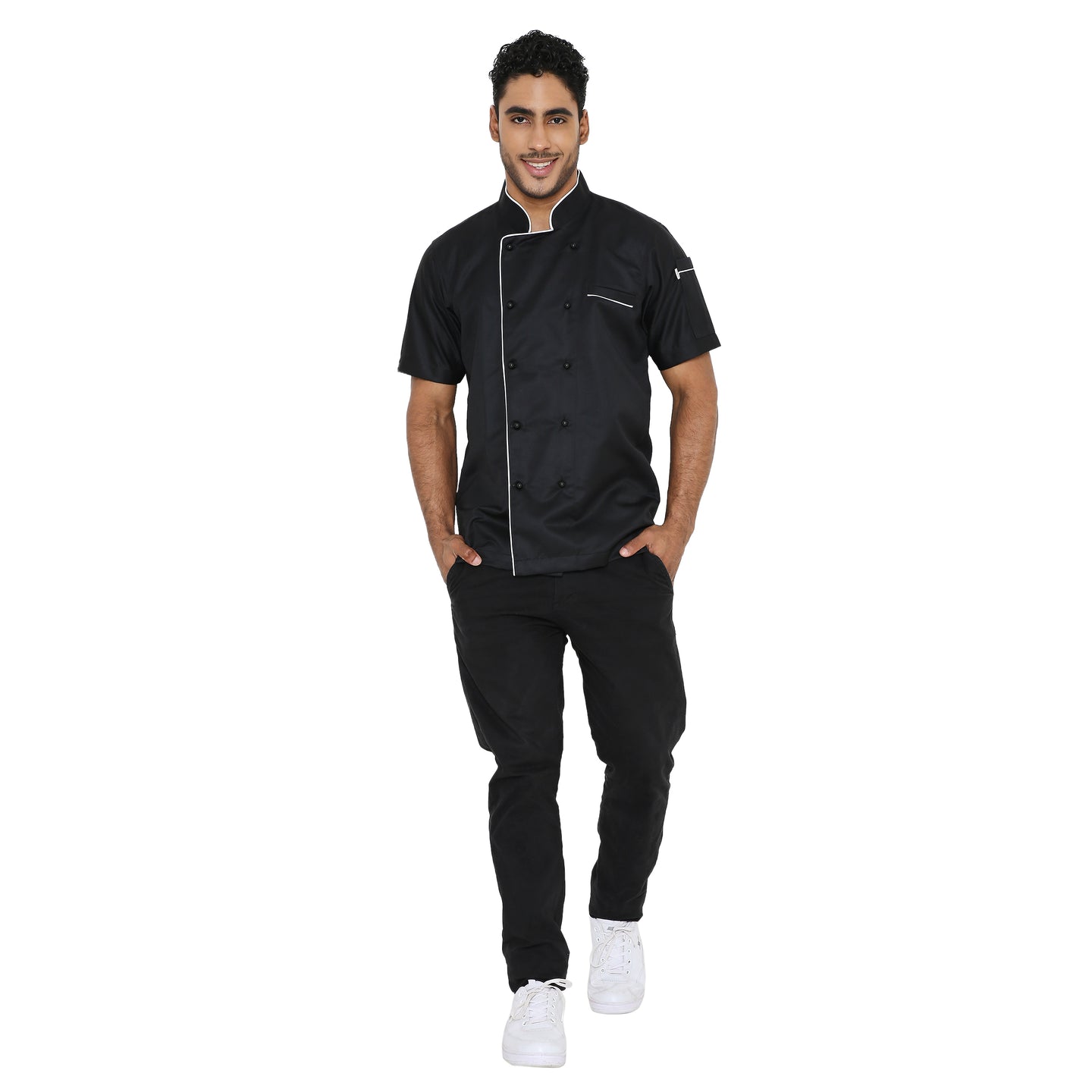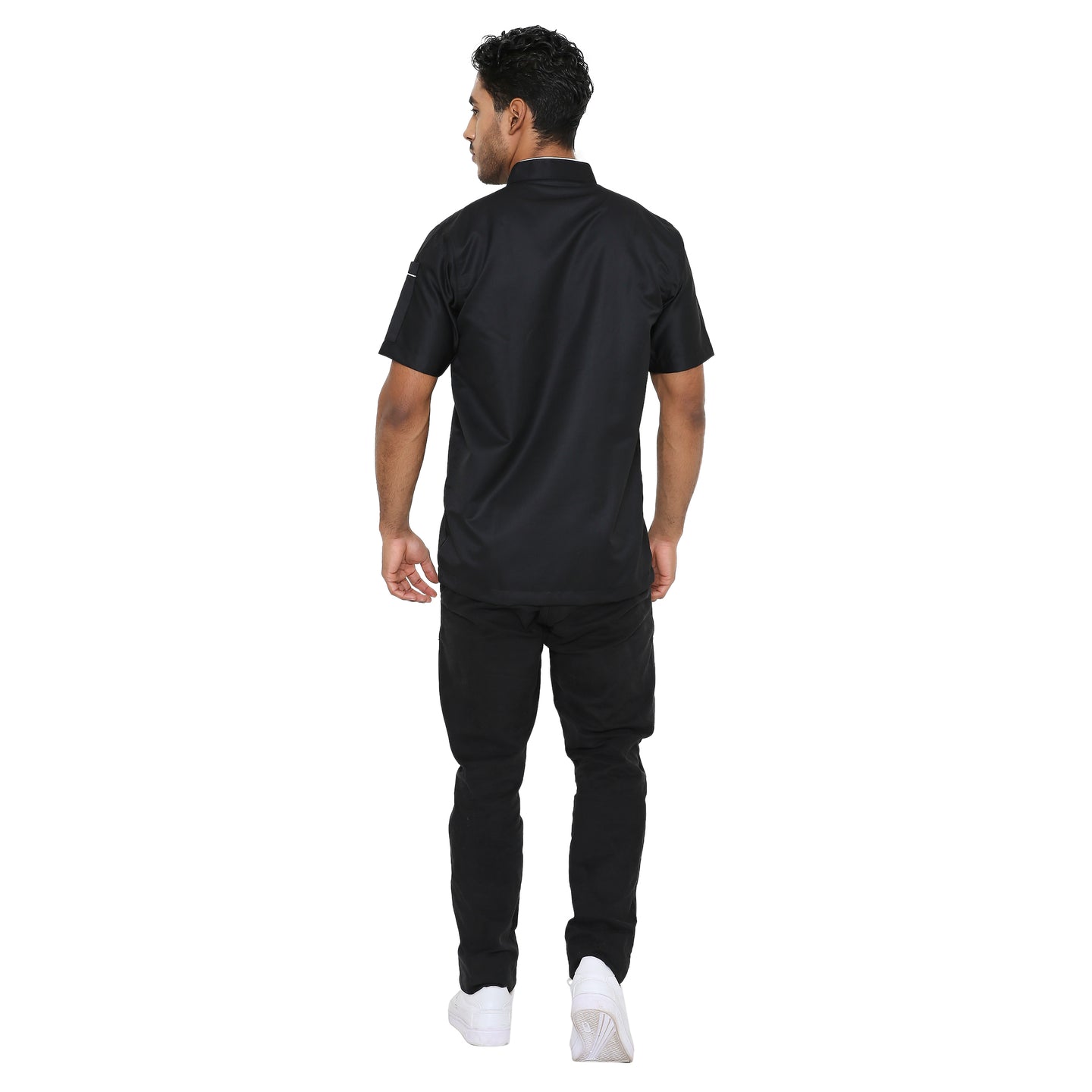 1Basic Unisex Half Sleeve Chef Coat (Black) - Free Embroidery