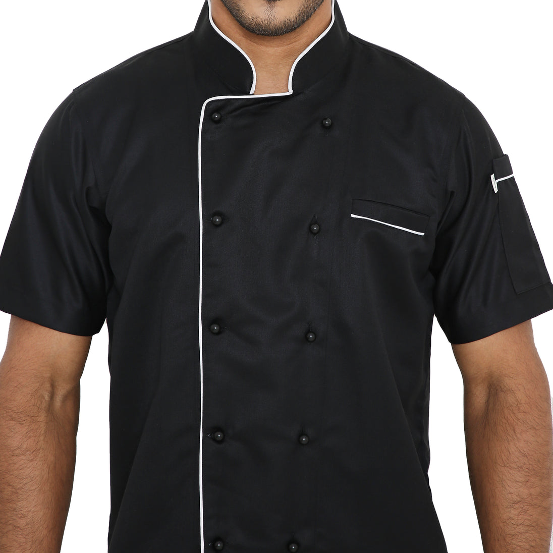 29Classic Half Sleeve Chef Coat (White/Black) - Free Embroidery