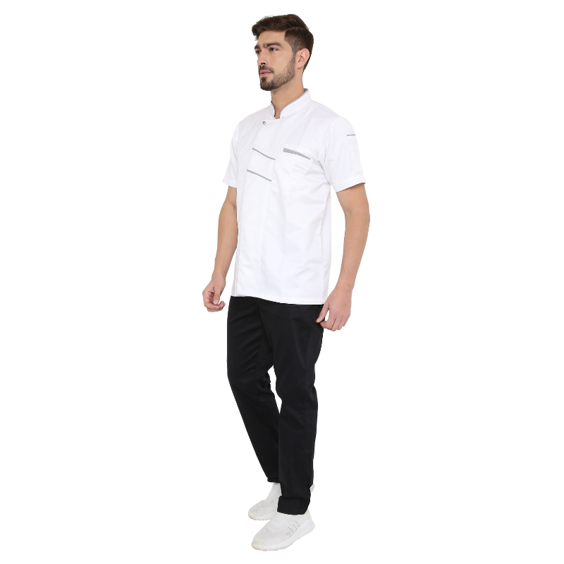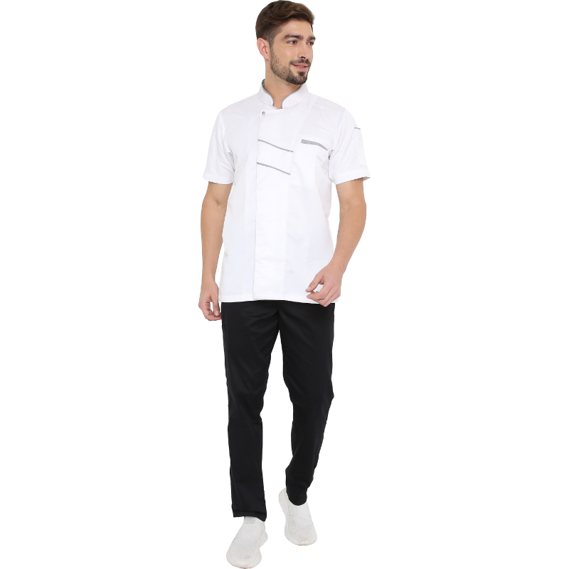 - White Chef Coat with Grey piping it give Classy extra ordinary look.