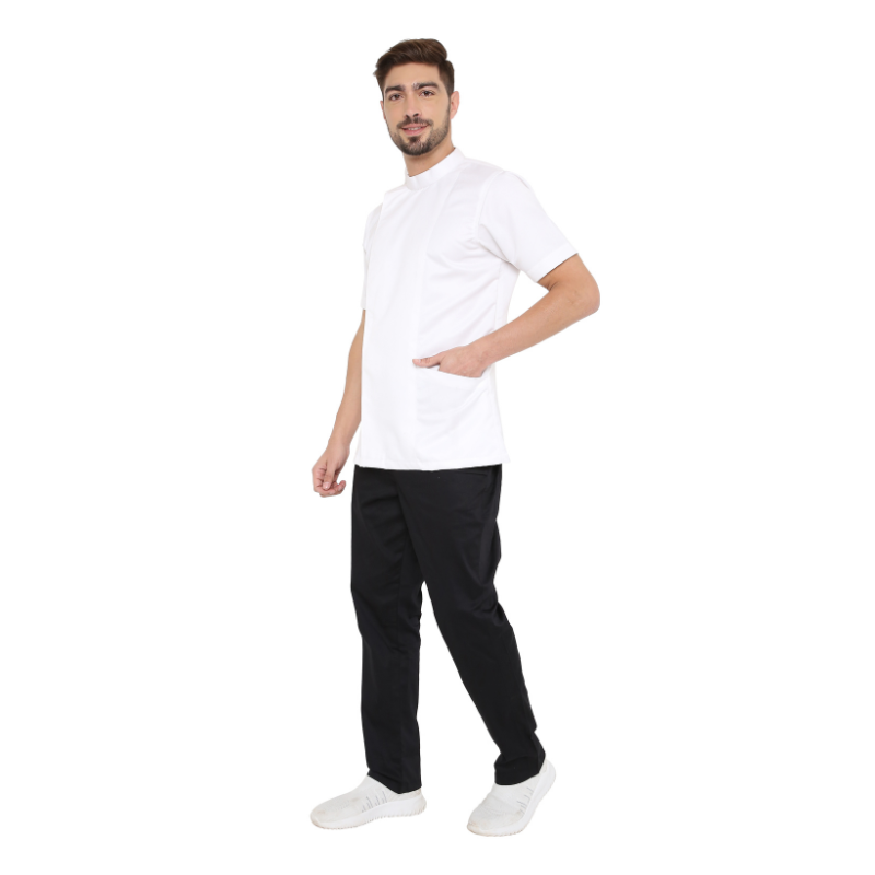 29Classic Half Sleeve Chef Coat (White/Black) - Free Embroidery