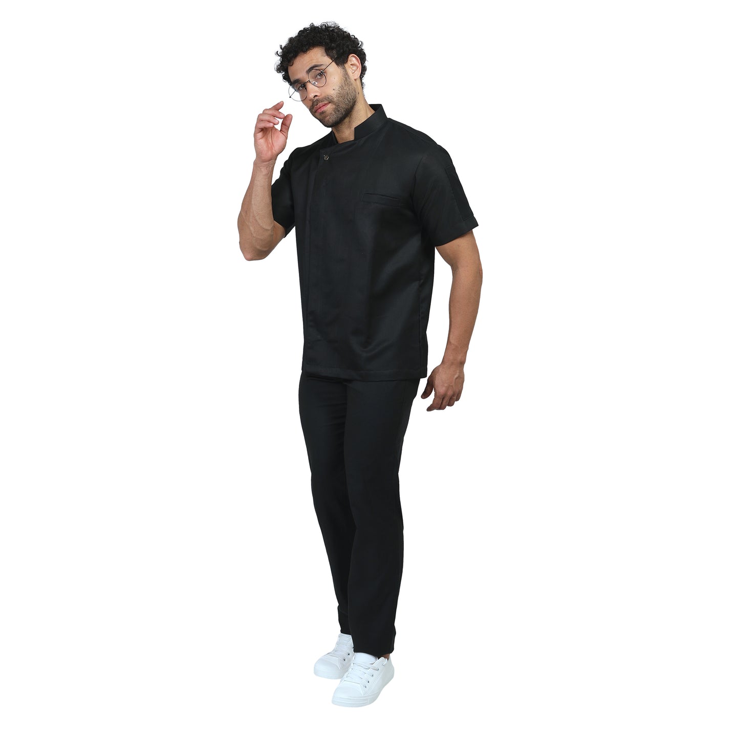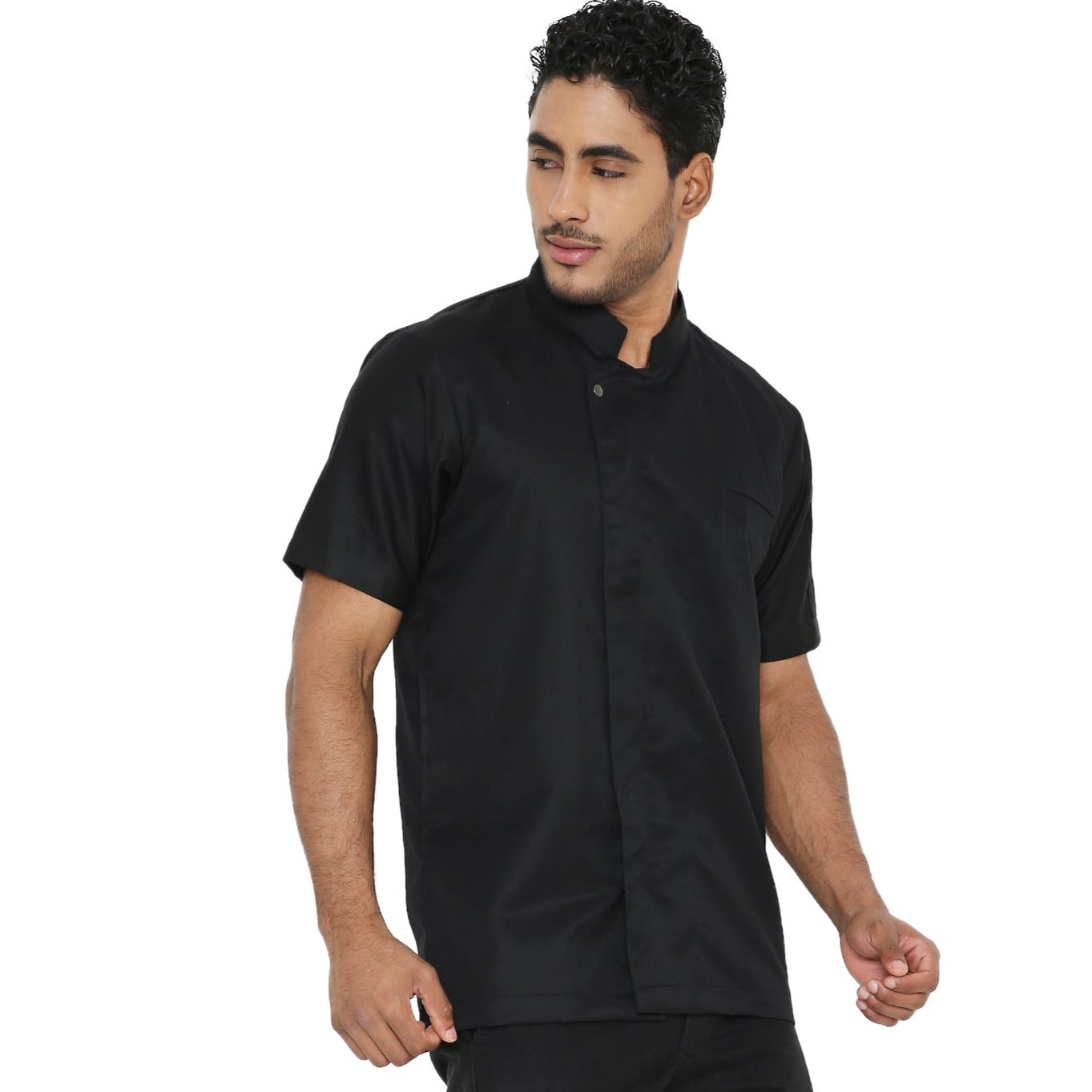 1Basic Unisex Half Sleeve Chef Coat (Black) - Free Embroidery