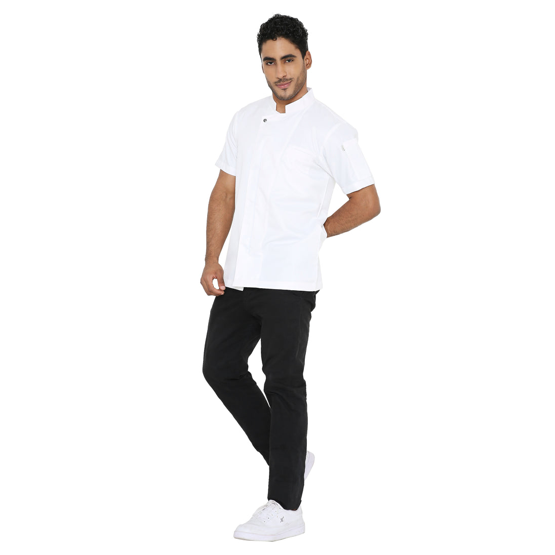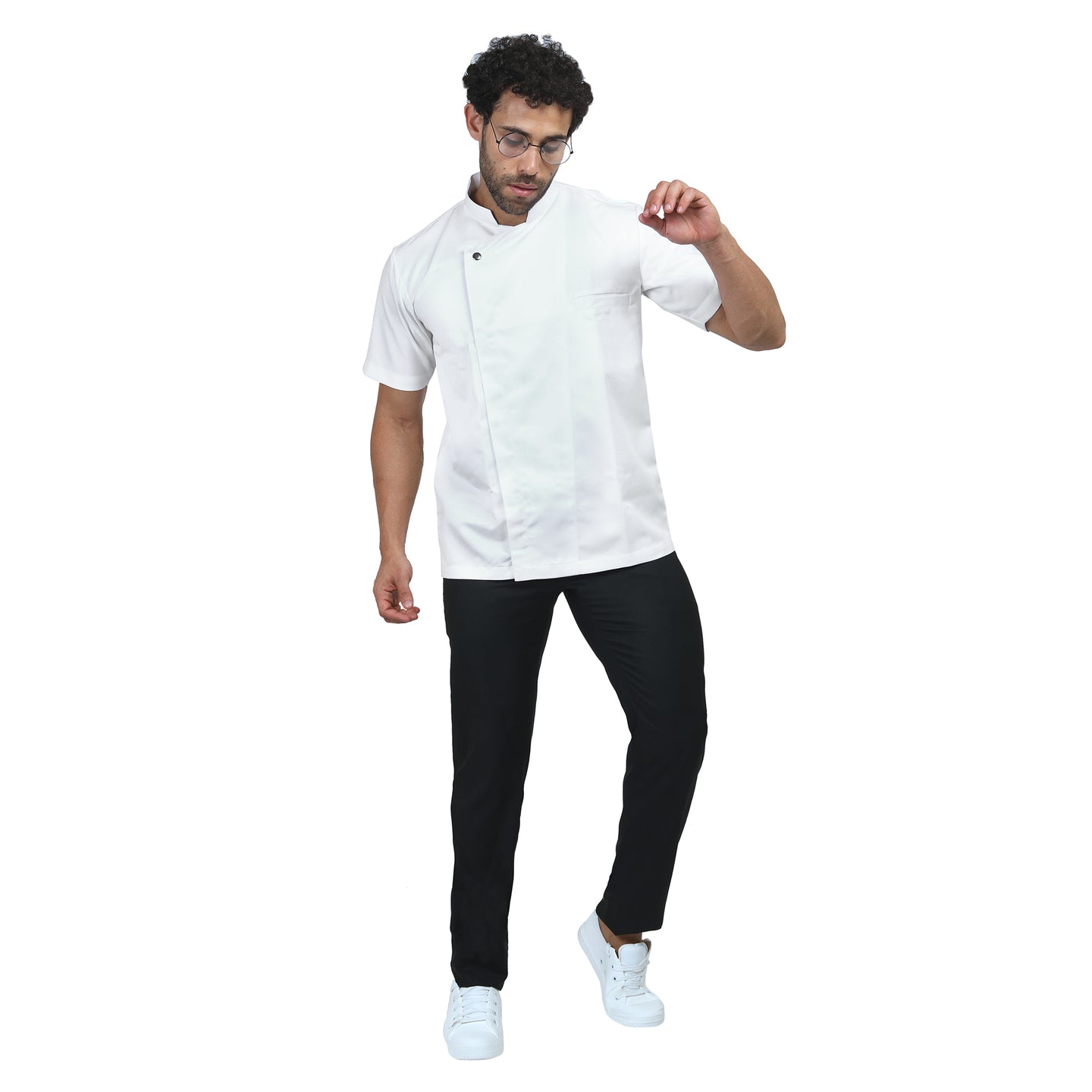 29Classic Half Sleeve Chef Coat (White/Black) - Free Embroidery