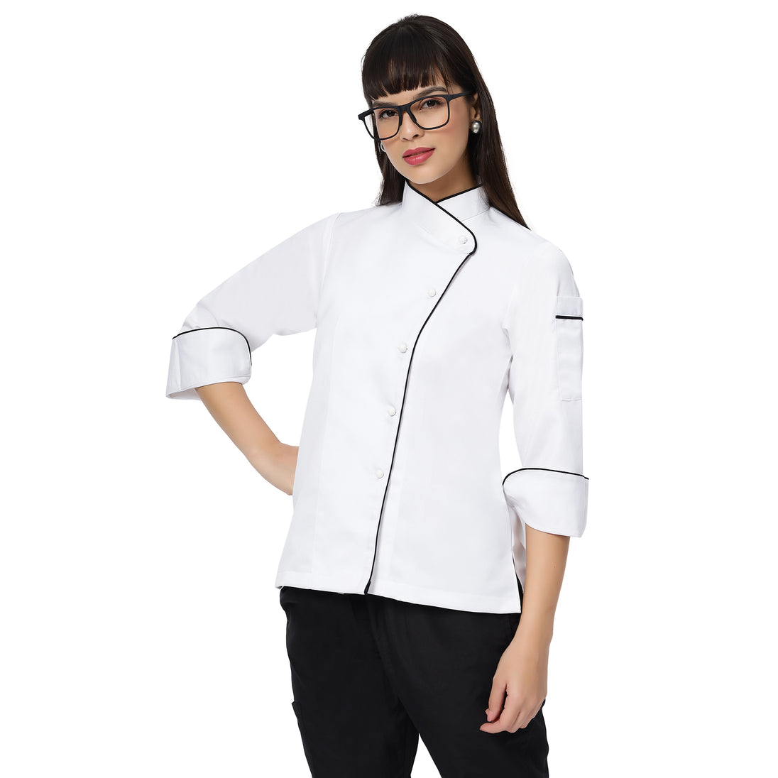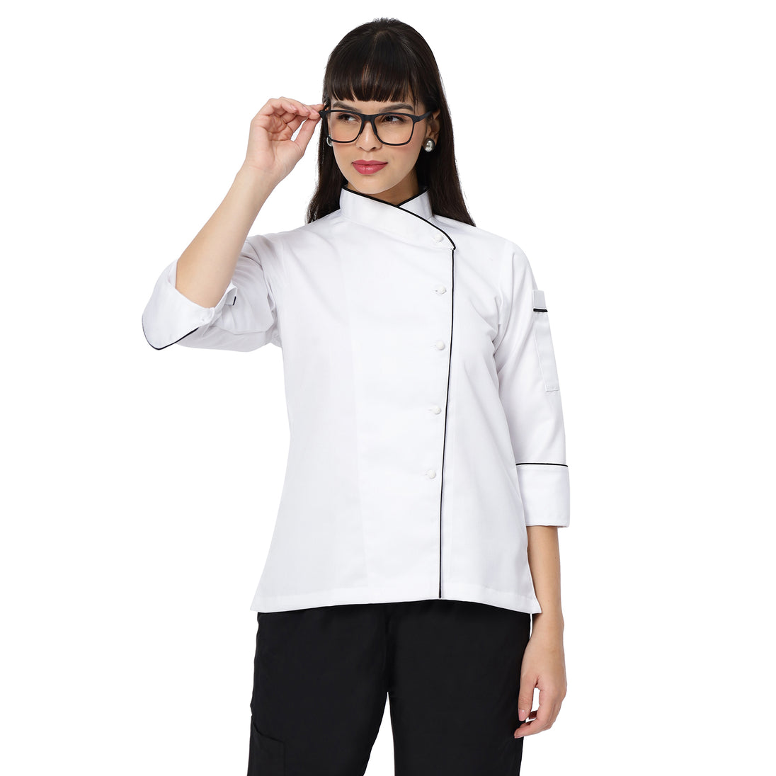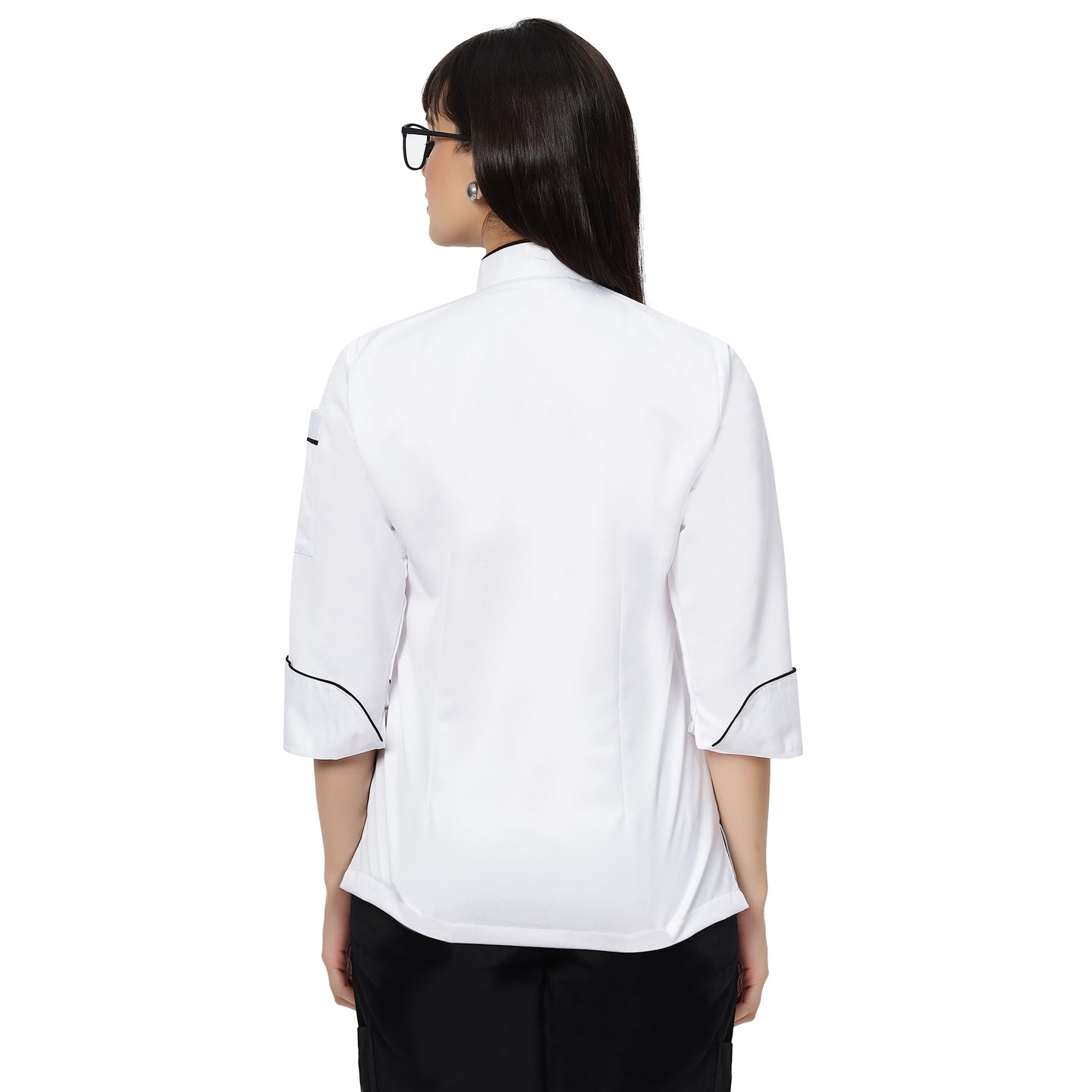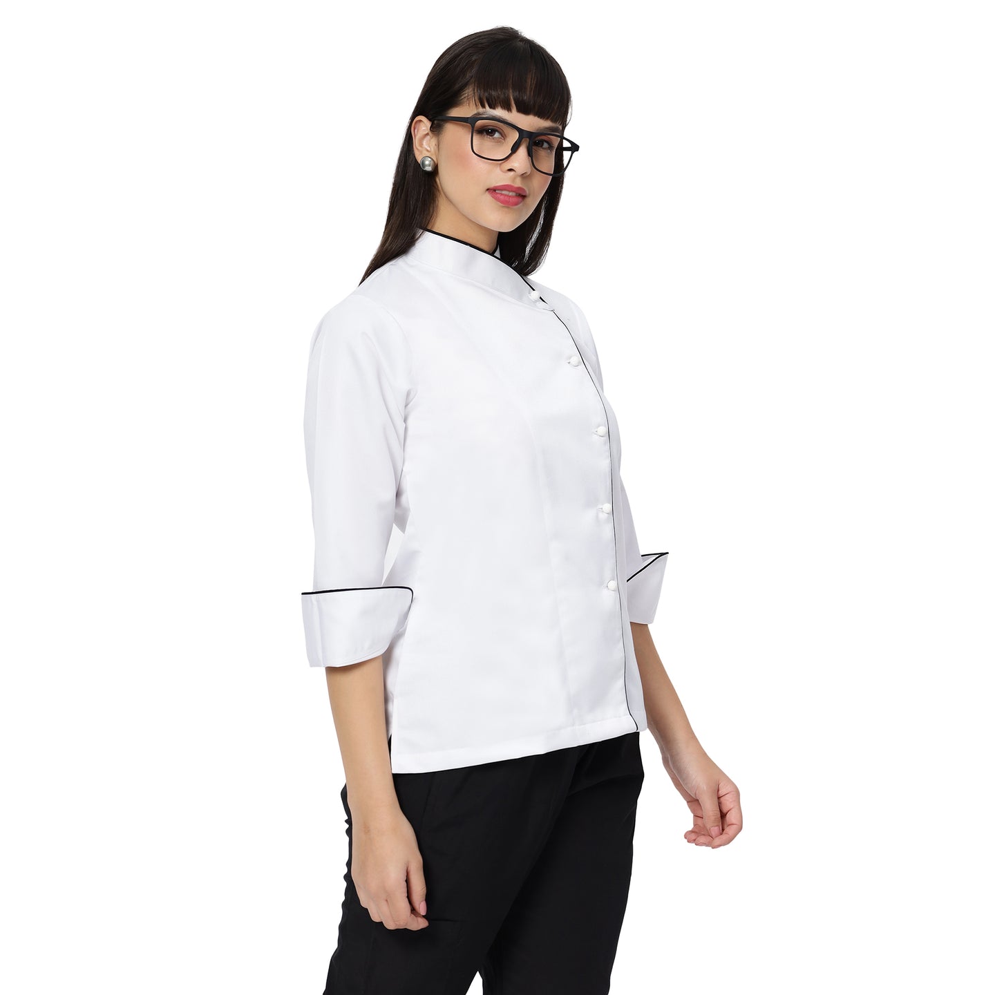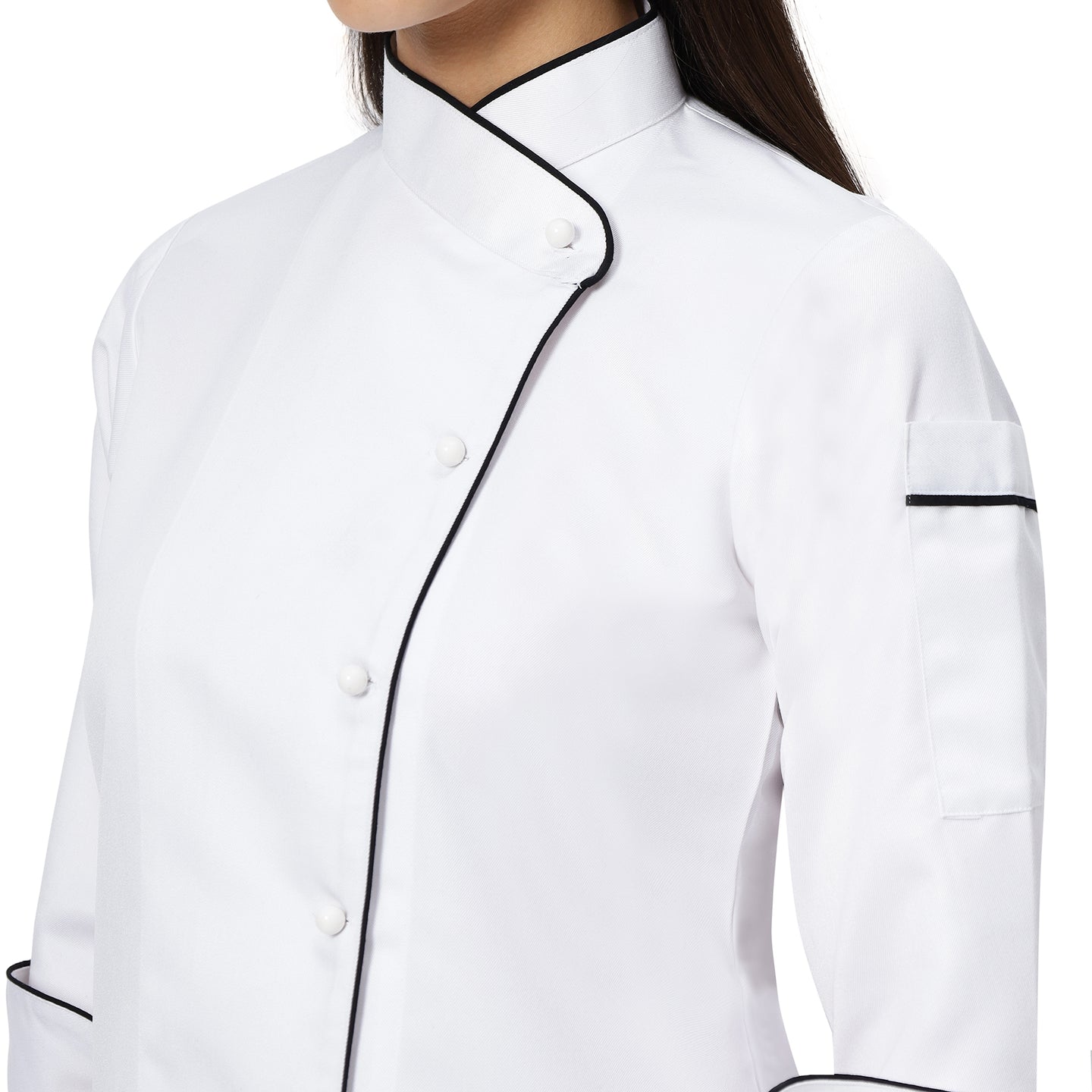 1Classic Full Sleeve Chef Coat (White/Black) - Free Embroidery