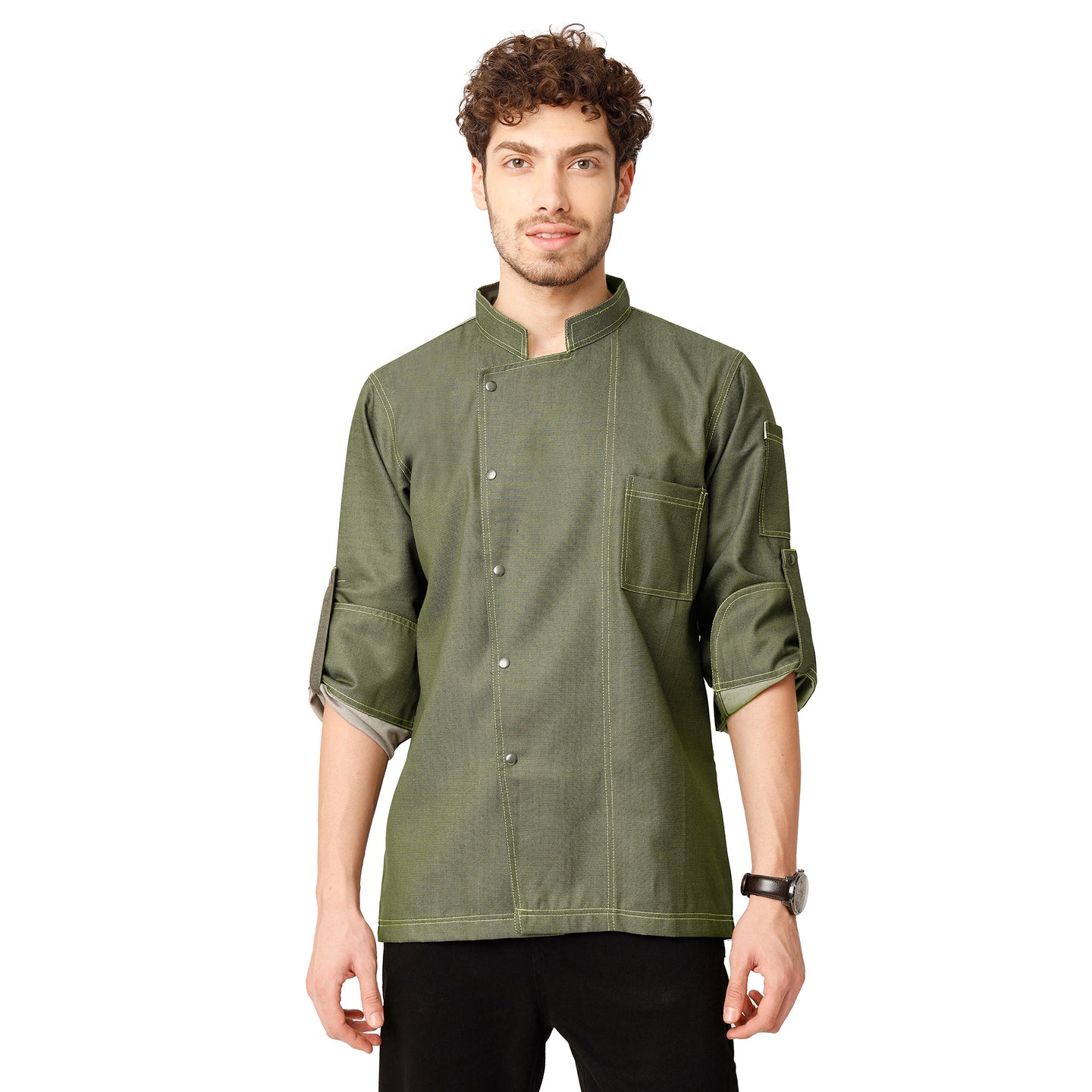 1Classic Full Sleeve Chef Coat (White/Black) - Free Embroidery