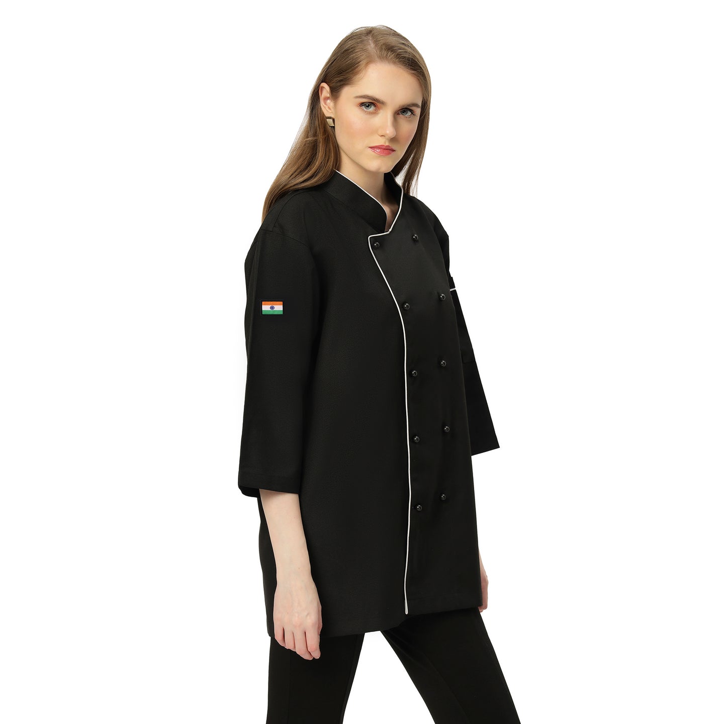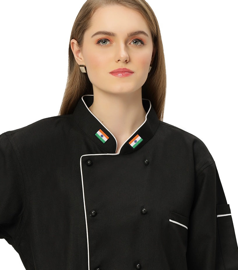 1Classic Full Sleeve Chef Coat (White/Black) - Free Embroidery