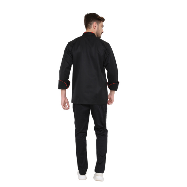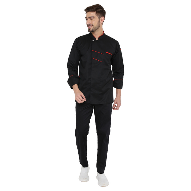 Classic Full Sleeve Chef Coat (Black/Red) - Free Embroidery