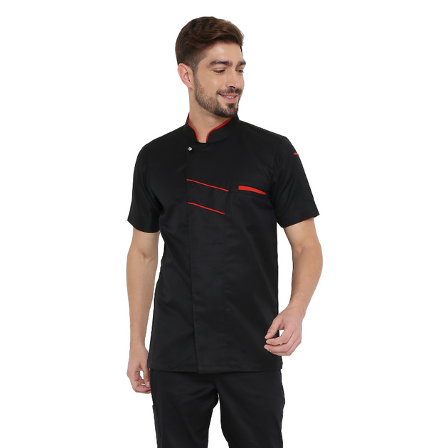 6Classic Half Sleeve Chef Coat (Black/Red) - Free Embroidery