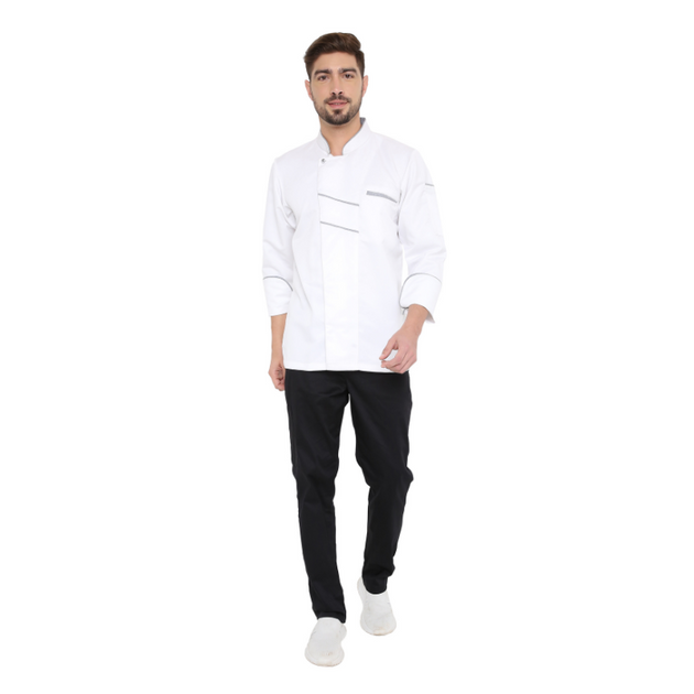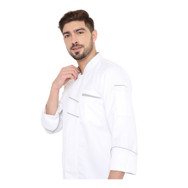 1Classic Full Sleeve Chef Coat (White/Grey) - Free Embroidery