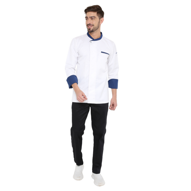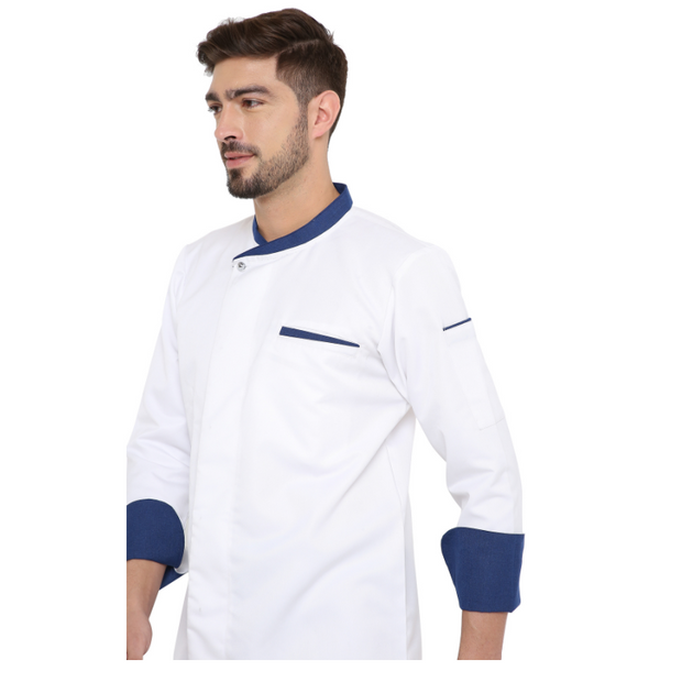 2Classic Full Sleeve Chef Coat (White/Blue) - Free Embroidery