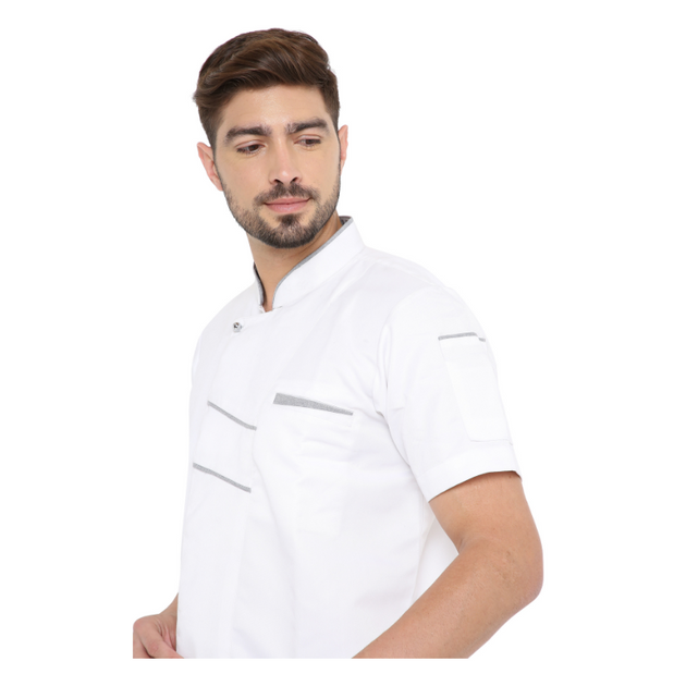 15Classic Half Sleeve Chef Coat (White/Grey) - Free Embroidery