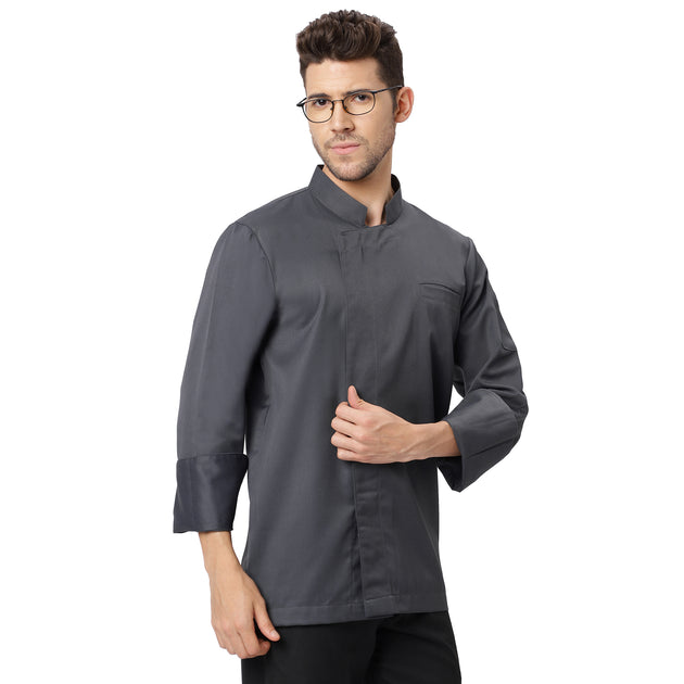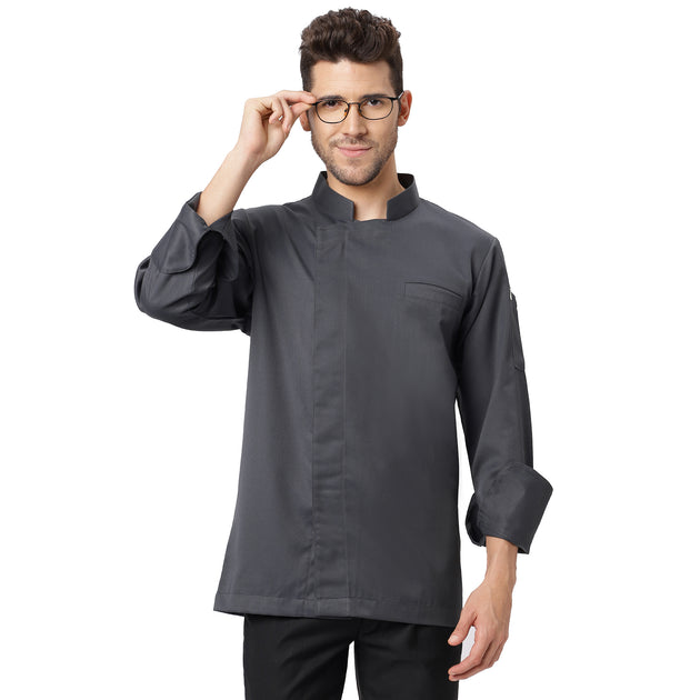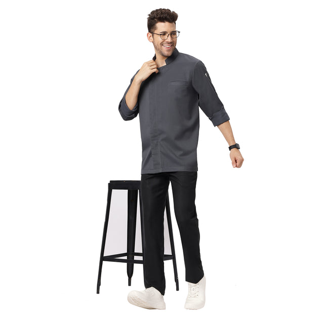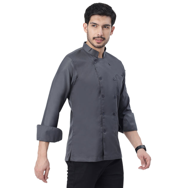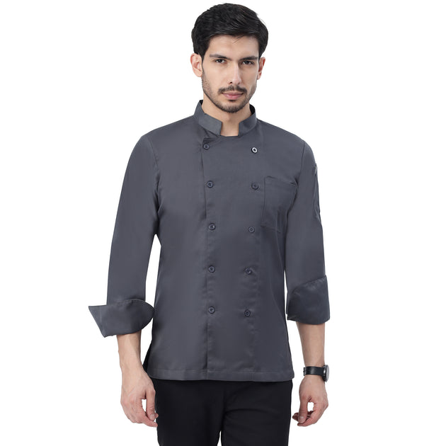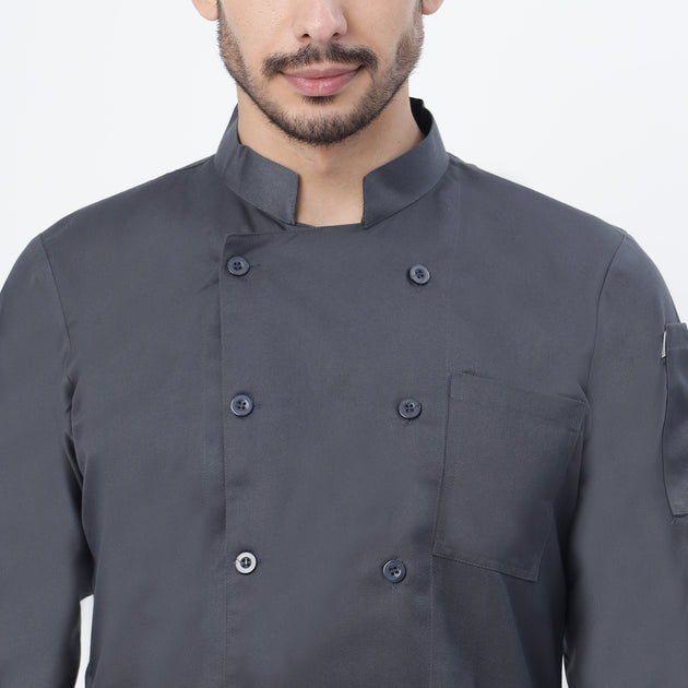 1Classic Full Sleeve Chef Coat (Dark Grey) - Free Embroidery