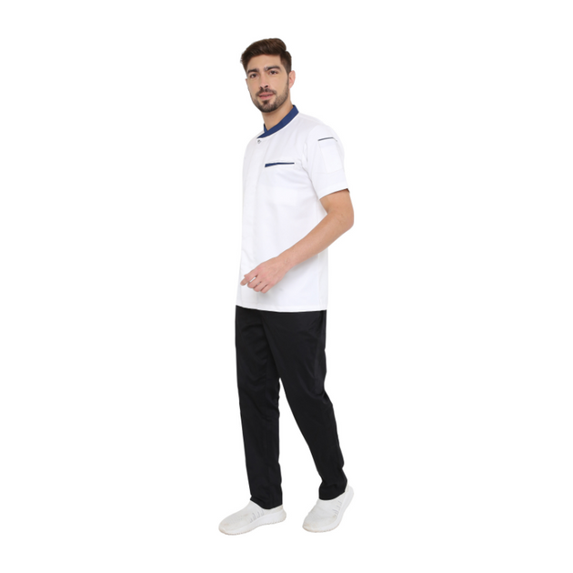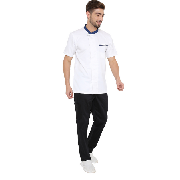 11Classic Half Sleeve Chef Coat (White/Blue) - Free Embroidery