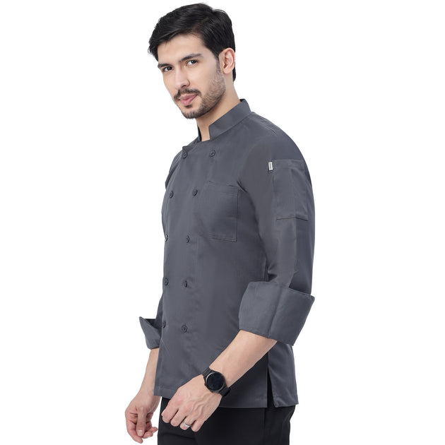 Basic Unisex Full Sleeve Chef Coat (Dark Grey) - Free Embroidery