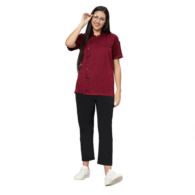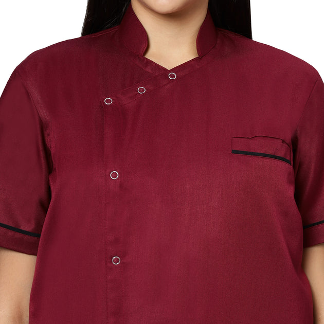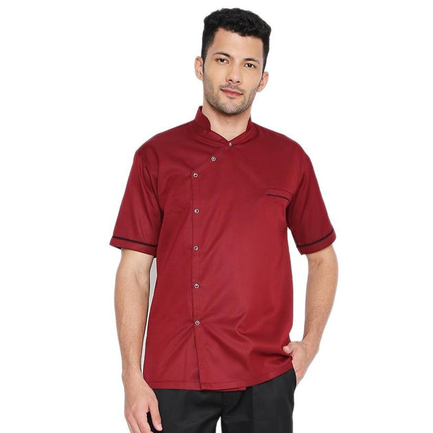 10Modern Half Sleeve Chef Coat Snap Button (Maroon/Black) - Free Embroidery