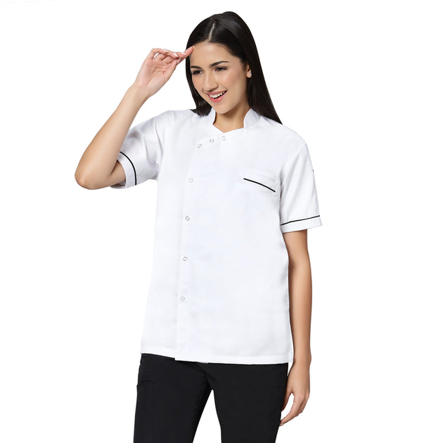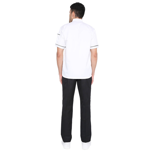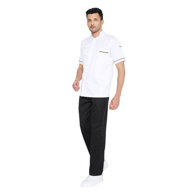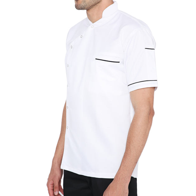 11Modern Half Sleeve Chef Coat Snap Button (White/Black) - Free Embroidery