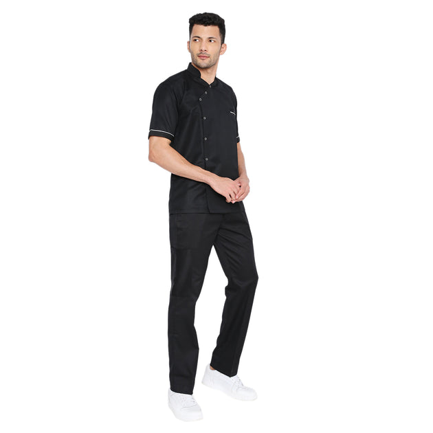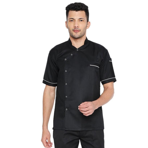 11Modern Half Sleeve Chef Coat Snap Button (Black/White) - Free Embroidery
