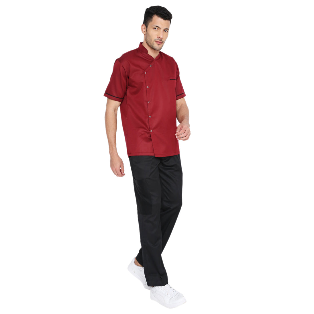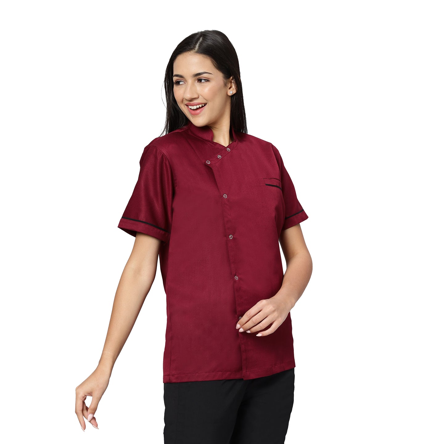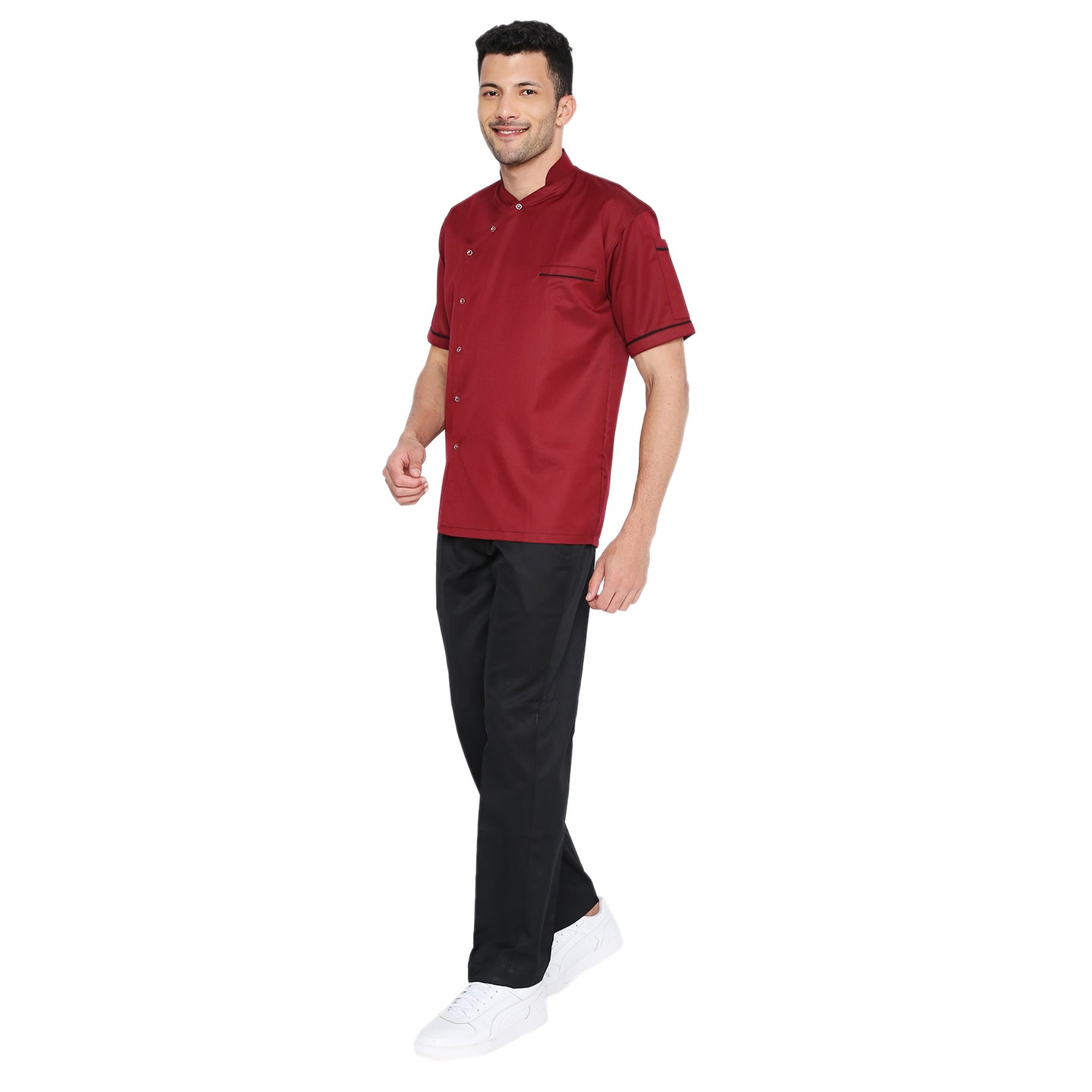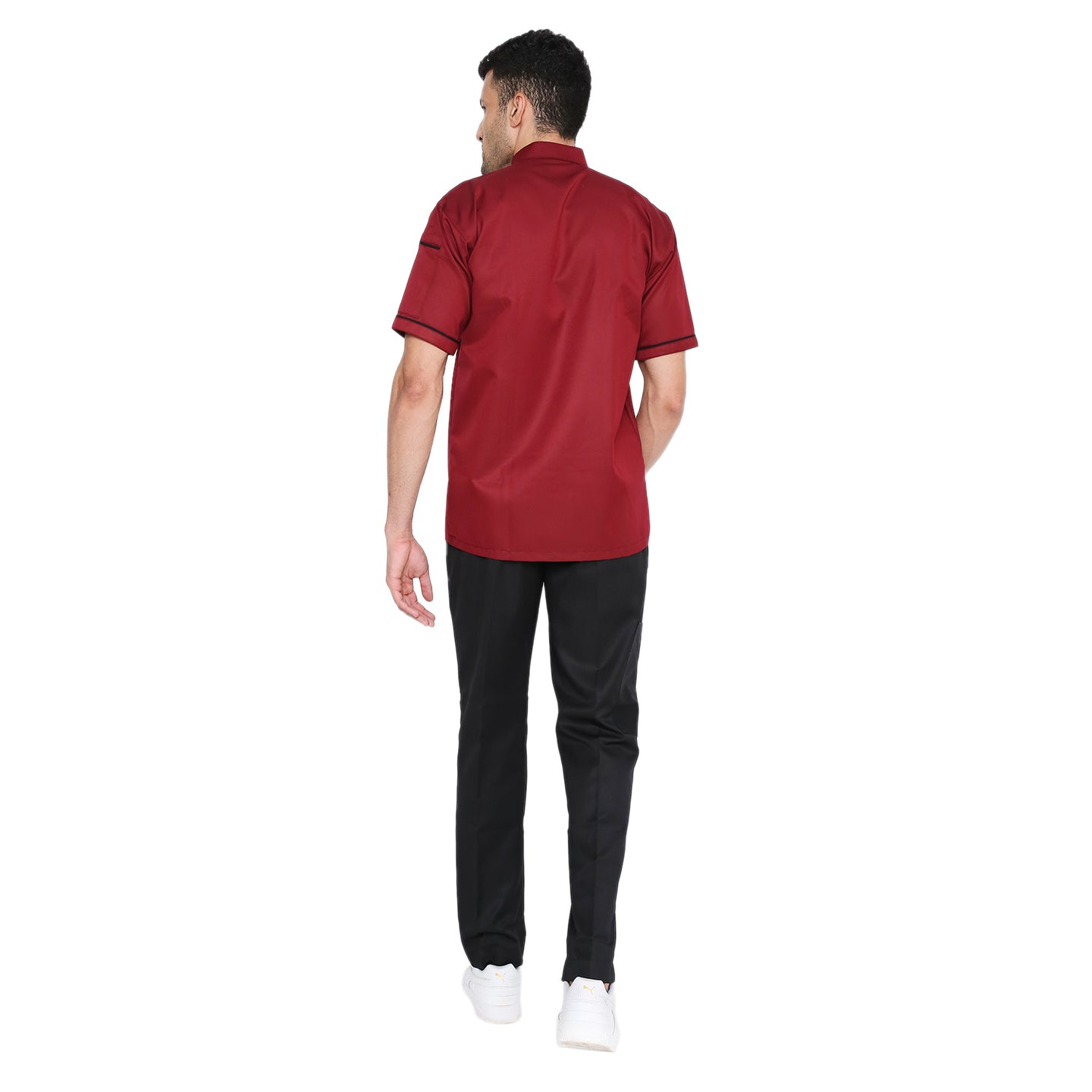 - Maroon Chef Coat with Snap Buttons Closure & Black detailing