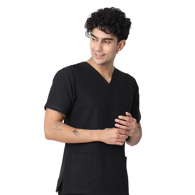 Men's 4-Way Noir Scrub Suit (No Wrinkle) Free Embroidery (SLIM FIT)