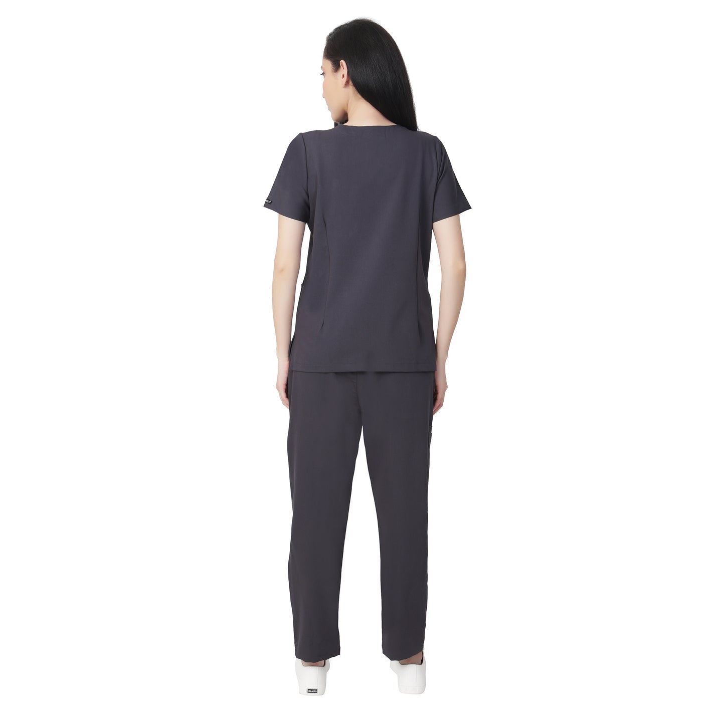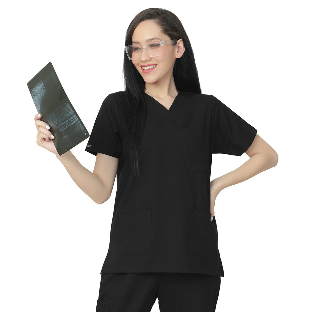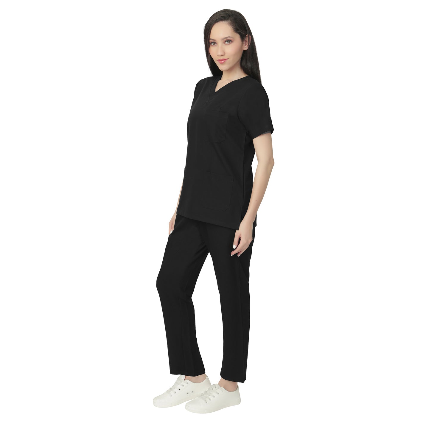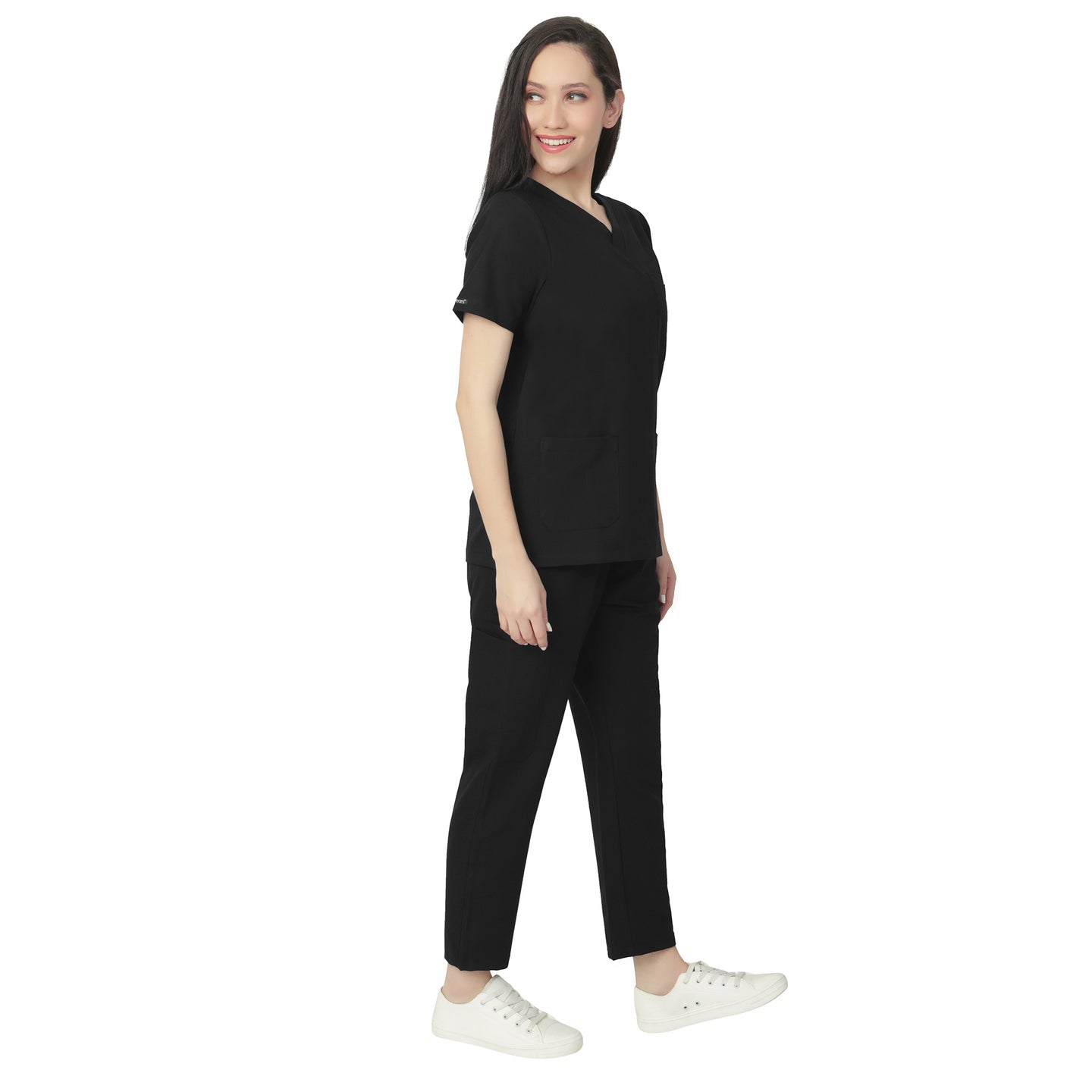 Women's 4-Way Noir Scrub Suit (No Wrinkle) Free Embroidery (SLIM FIT)