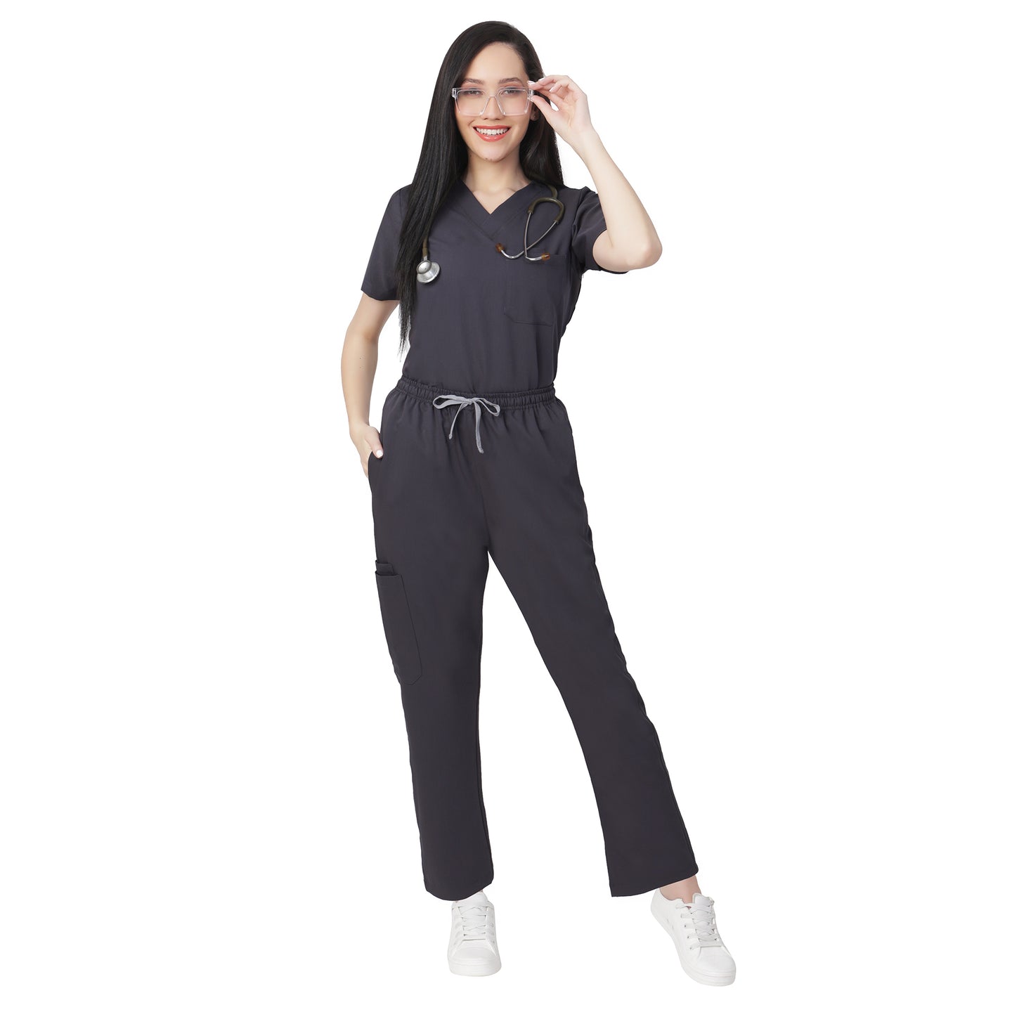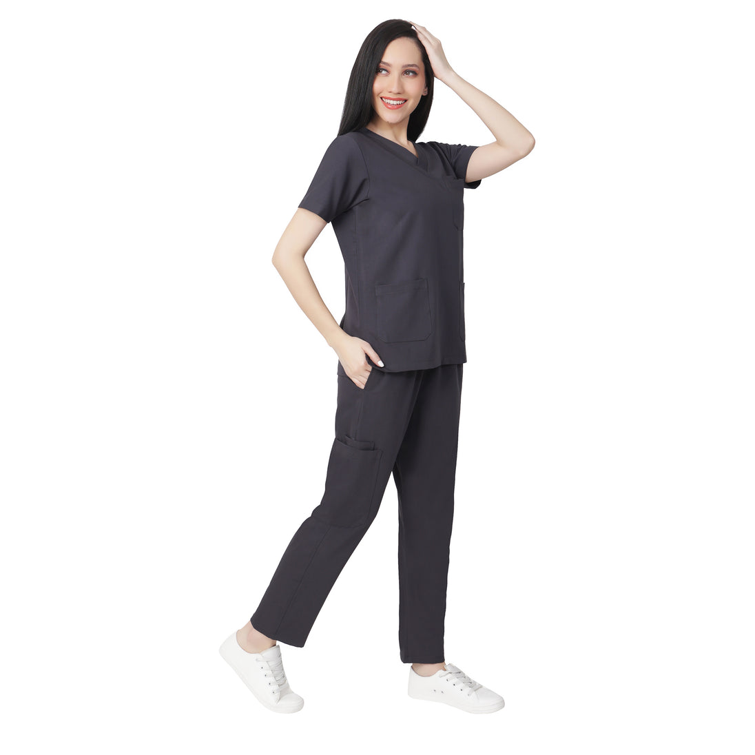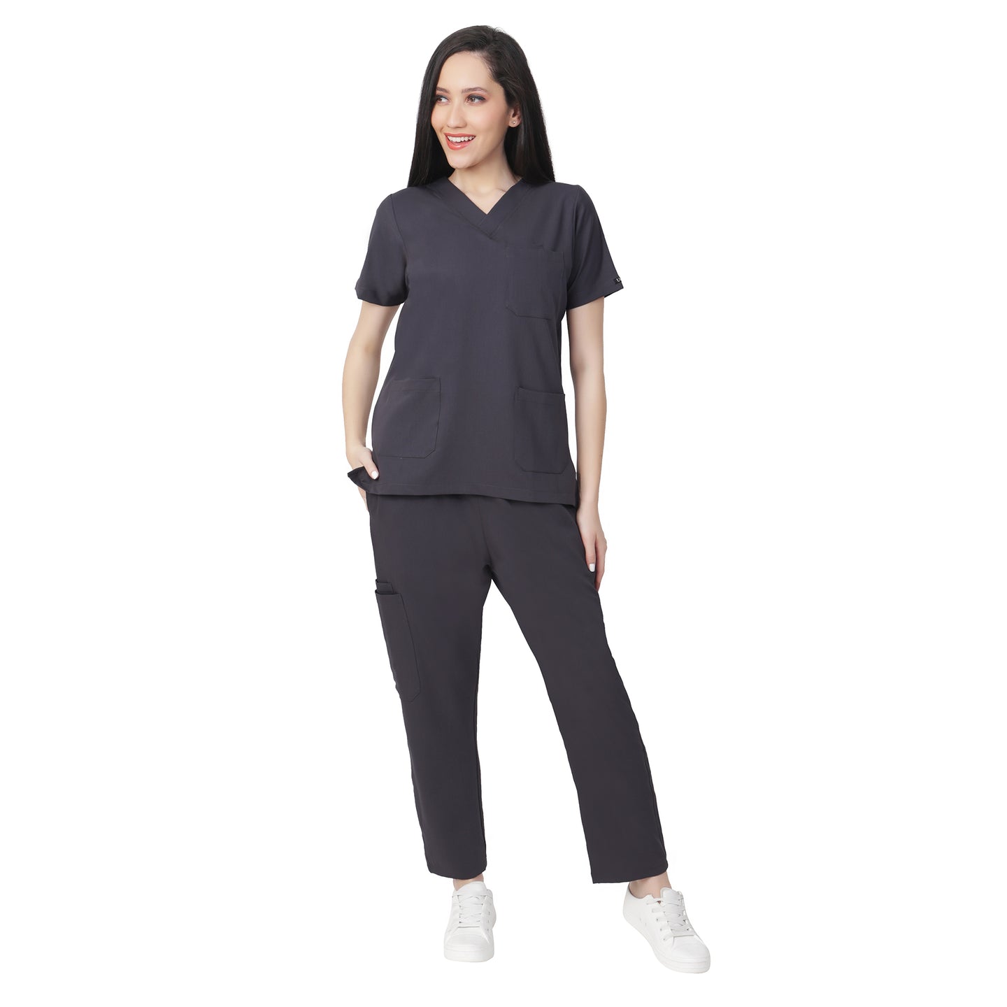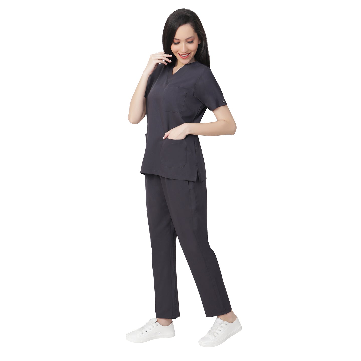 Women's 4-Way Noir Scrub Suit (No Wrinkle) Free Embroidery (SLIM FIT)